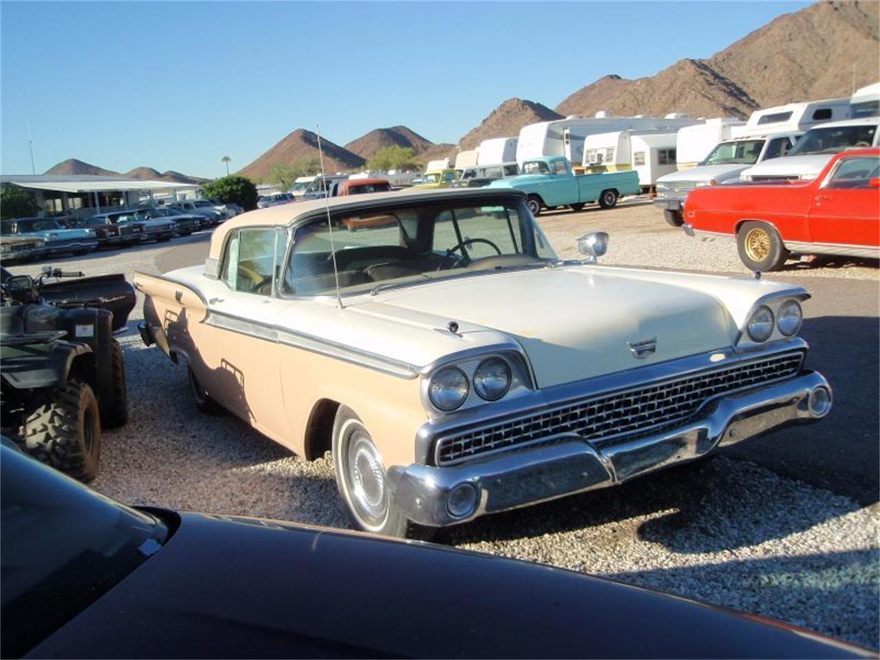 2 door 1959 Ford Galaxie Skyliner retractable convertible top. 4 BBL carb, Auto, H Code, 352 V8, 300 HP.