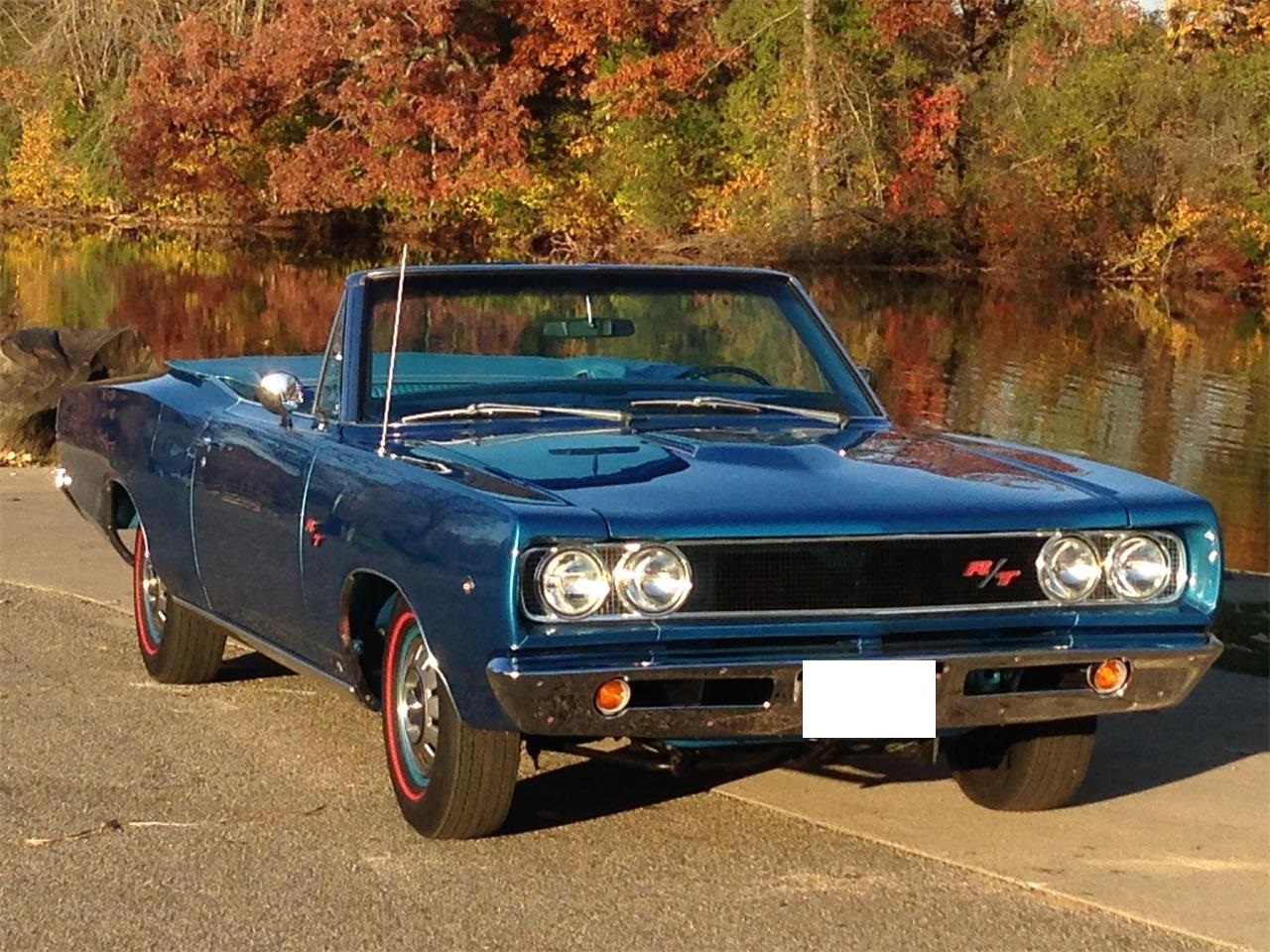 Numbers matching 440/375 HP Magnum engine Torqueflite 727 automatic transmission All original car was rotisserie restored Original fender build tag Production total in 1968 was 514 units 1 of A few known remaining R/T convertibles to have survived the test of time Extremely rare Power steering Positraction Dual outside mirrors Bucket seats Steel wheels hub caps Bright Blue metallic with med. Dark Blue interior White top White horizontal stripe HD brakes Tinted Glass