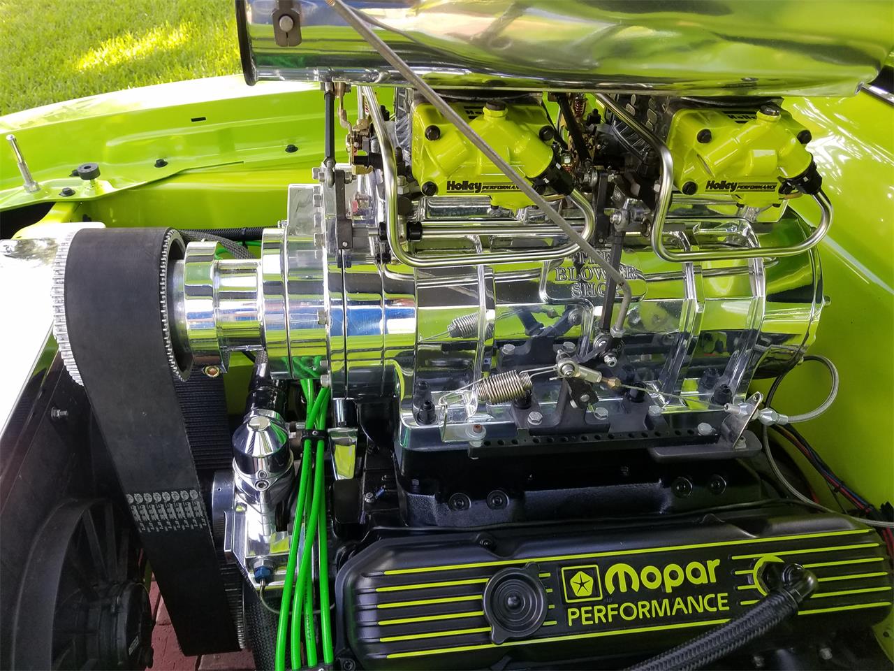 Plymouth Road Runner Pro street This Gorgeous, Flawless show car has been has been fully retored! Was just completed 2018. Starting with the exterior, the glass is all new and is the trim (moldings). The body modification and work are Magnificent! The paint looks like glass, and the front and rear bumpers have been set almost flush with the car, the rear wing has been molded into the body, (looks factory), custom rear bumper with the tail pipes molded into the bumper. The hood has been modified to fit the BIG 871 blower, but looks factory. The door handles have been shaved off and the doors open with the touch of your fab key, as well as, the trunk. there are also emergency pull handles on either side under the front tire wheel wells, just in case to open the doors. The front grill has been modified for a more aggressive look. The rear fenders have been modified and tubed to fit the Massive Rear Tires: 31x18R20 - Mickey Thompson Sportsman Rear Wheels: 20, Boyd Coddington 5-SpokesFront Wheels (powder coated Matte Black w/ sublime green accents): 18 Boyd Coddington 5-Spokes Front (powder coated Matte Black w/ sublime green accents). etc Key Components: - Victory Chromoly Driveshaft - Dual Driveshaft Loops - Huge Aluminum Radiator w/ Dual Electric Fans - MSD Distributor - MSD Wires - MSD Coil Cosmetics: - Nicely Painted Engine Bay - Shaved & Painted Firewall.