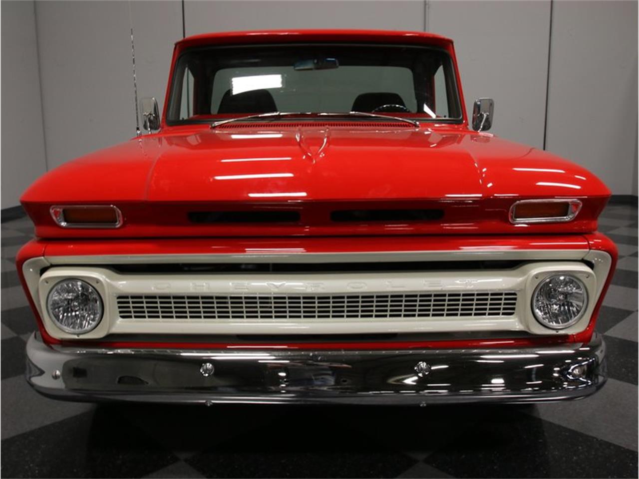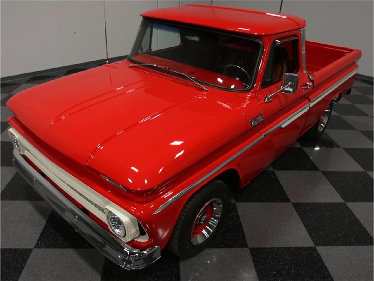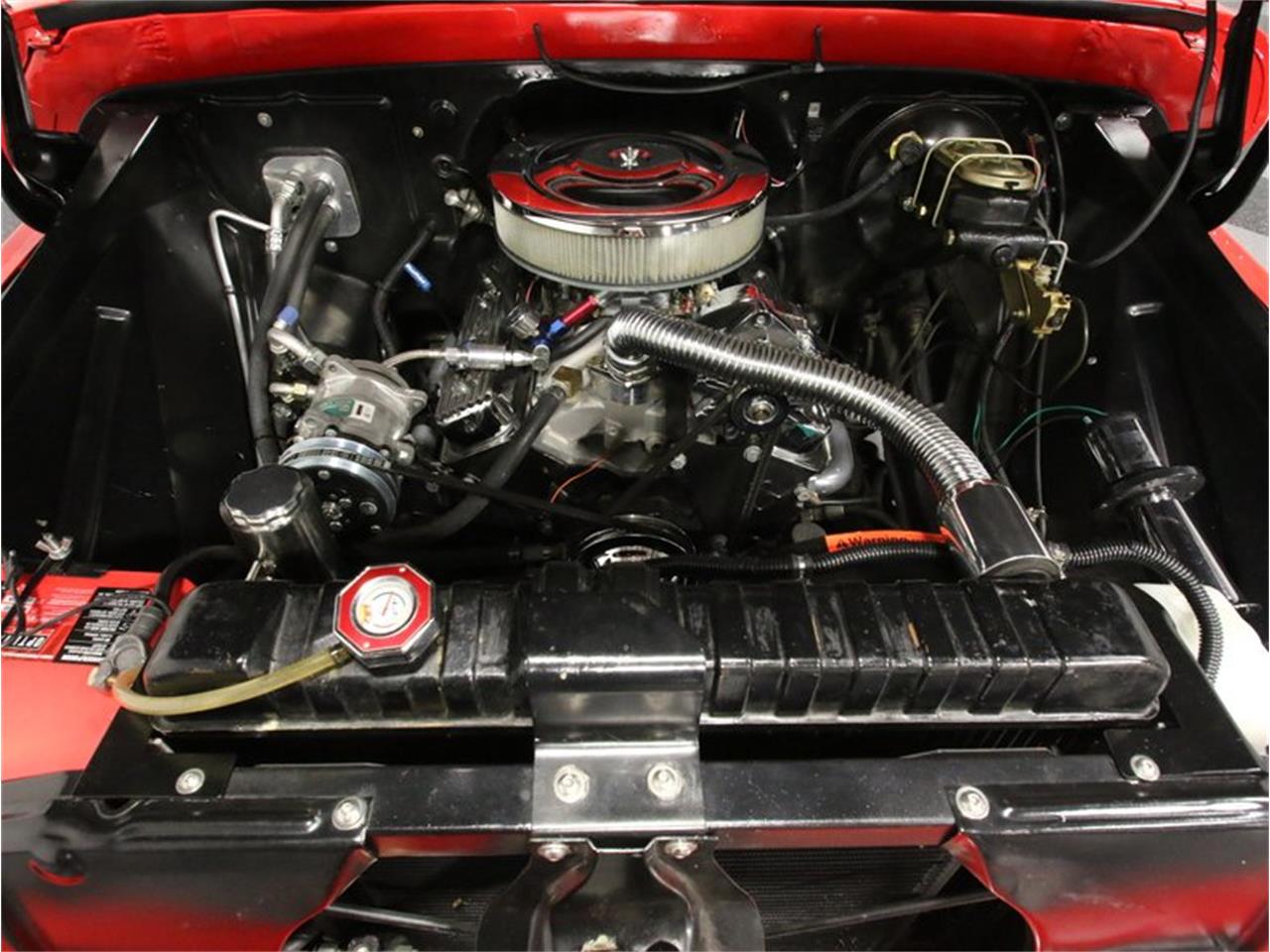 Fit and finish are exemplary and if this truck ever spent days out in the field or on the job site, all evidence of it has been completely erased by the build. Instead, the sheetmetal is straight enough to use as a mirror, the red paint makes other red cars in our showroom look faded, and every edge was honed to a sharp crease that reflects light in a most impressive way. Oh, and all the trim remains intact; it's fully restored, but it's all there, glittering against the paint and accenting both the original design and the stance. In particular, the side trim remains as straight as a ruler and shows off a crisp white insert that looks right on the bright red pickup.