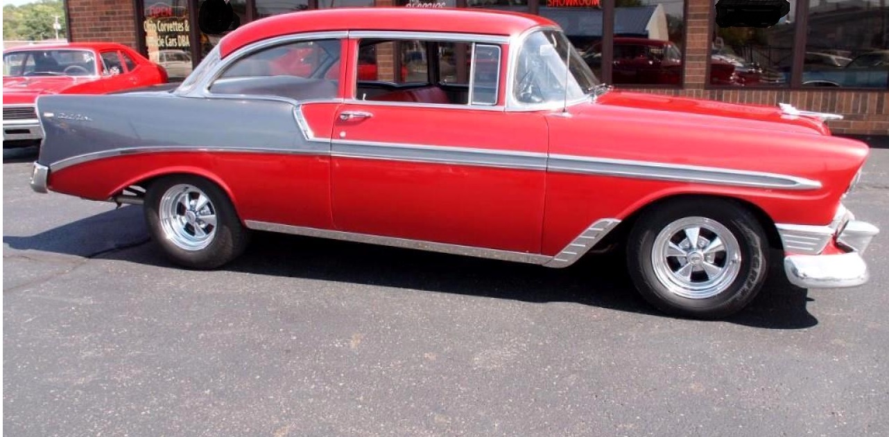Here is a nice solid 1956 Bel Air 2 door sedan,the chrome looks good ,interior done in vinyl and cloth material. This 56 Chevy is the perfect entry level car to get started in the collector car world.