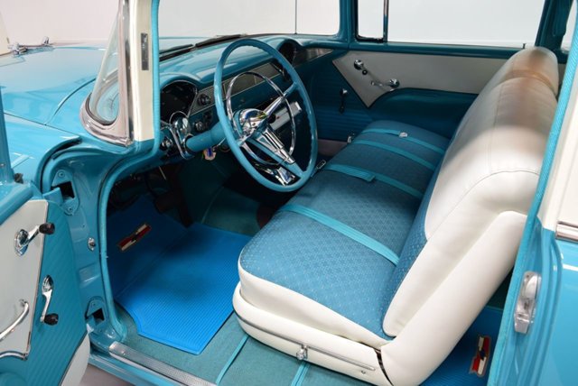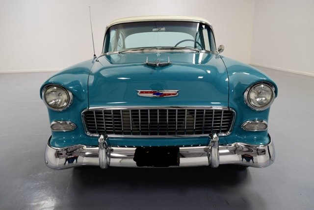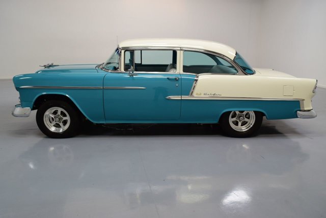 This 1955 Chevrolet is done just the way you want a cool cruising classic to be. The turquoise and white are a period-correct combo that really knows how to attract attention.This car really had style with the form fitting chrome bumper, wide grille, hint of fender overhang in the headlights, and a curvaceous hood with a fighter jet ornament taking off from the center.