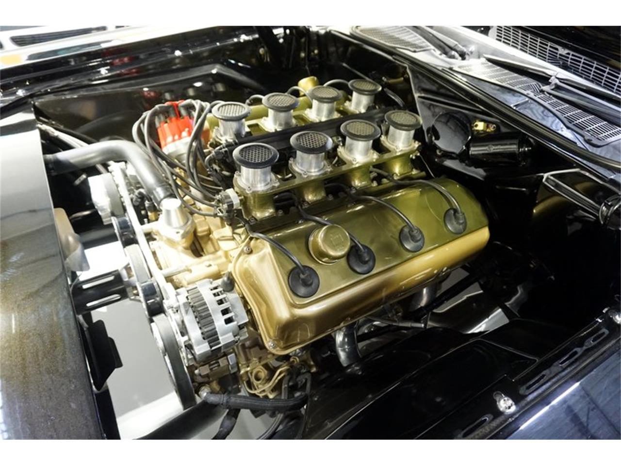 Inside, no surface or material was left untouched. If it was originally vinyl, it s now leather, and then some. Wilton Wool carpeting, an Alcantara headliner, Spinneybeck leather on the seats. The gauges are one off pieces by Classic Instruments. Inspired by aircraft, they swing backwards. Under the hood is a 426 Hemi crate engine from Mopar Performance. The cam was stepped up, and together with the Hillborn EFI system, custom headers and exhaust system, it puts out north of 575 horsepower.