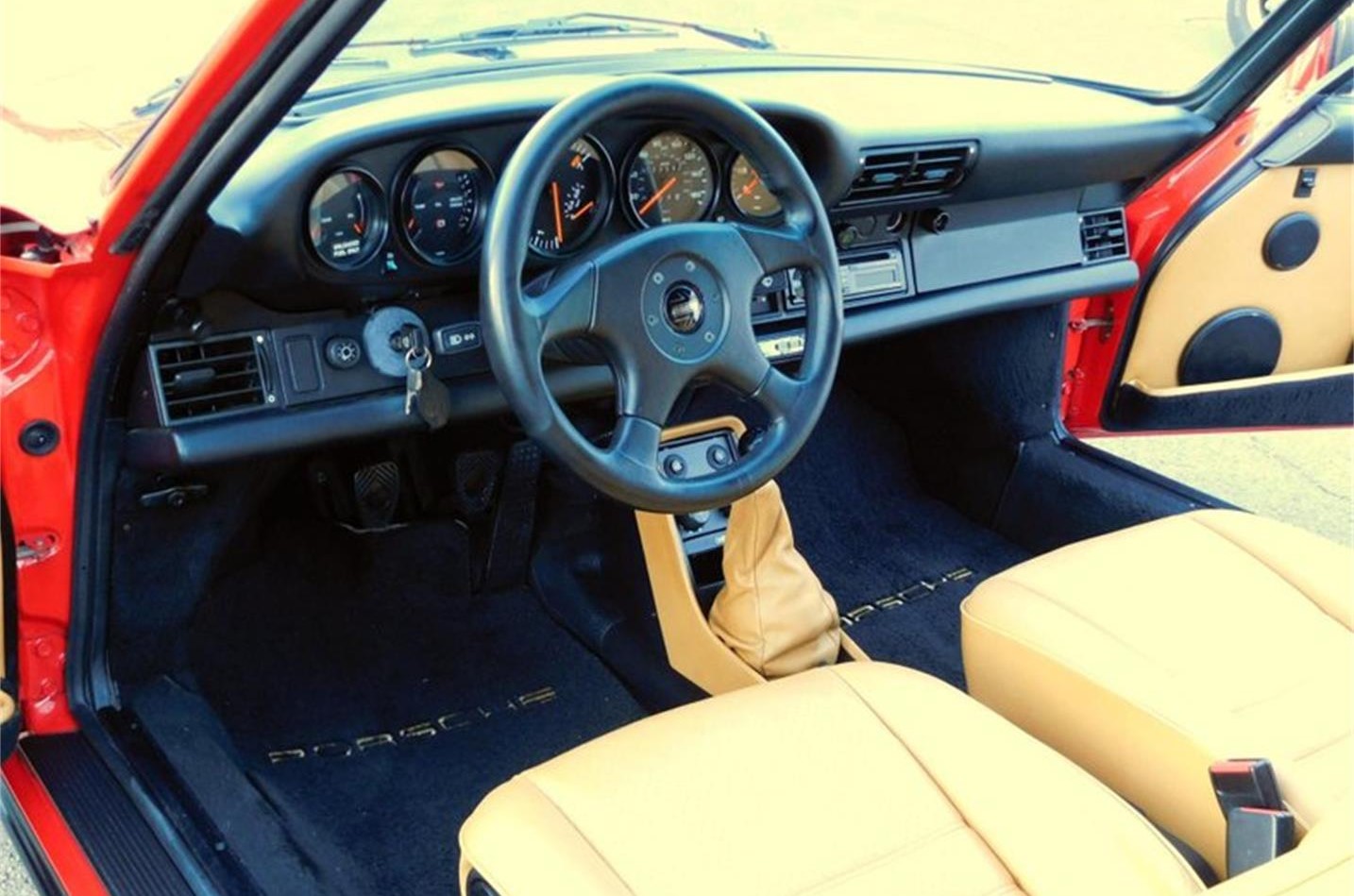 Porsche Launched The Turbocharged 911 aka Porsche 930 , the Emissions Controlled 3.0L Flat 6 Engine Was Rated For 282 Horsepower At 5,500 RPM And 289 lb ft Of Torque At 4,000 RPM. The Air And Oil Cooled Engine Was Mated To A 4 Speed Transmission With A Redline Of 7,200 RPM.