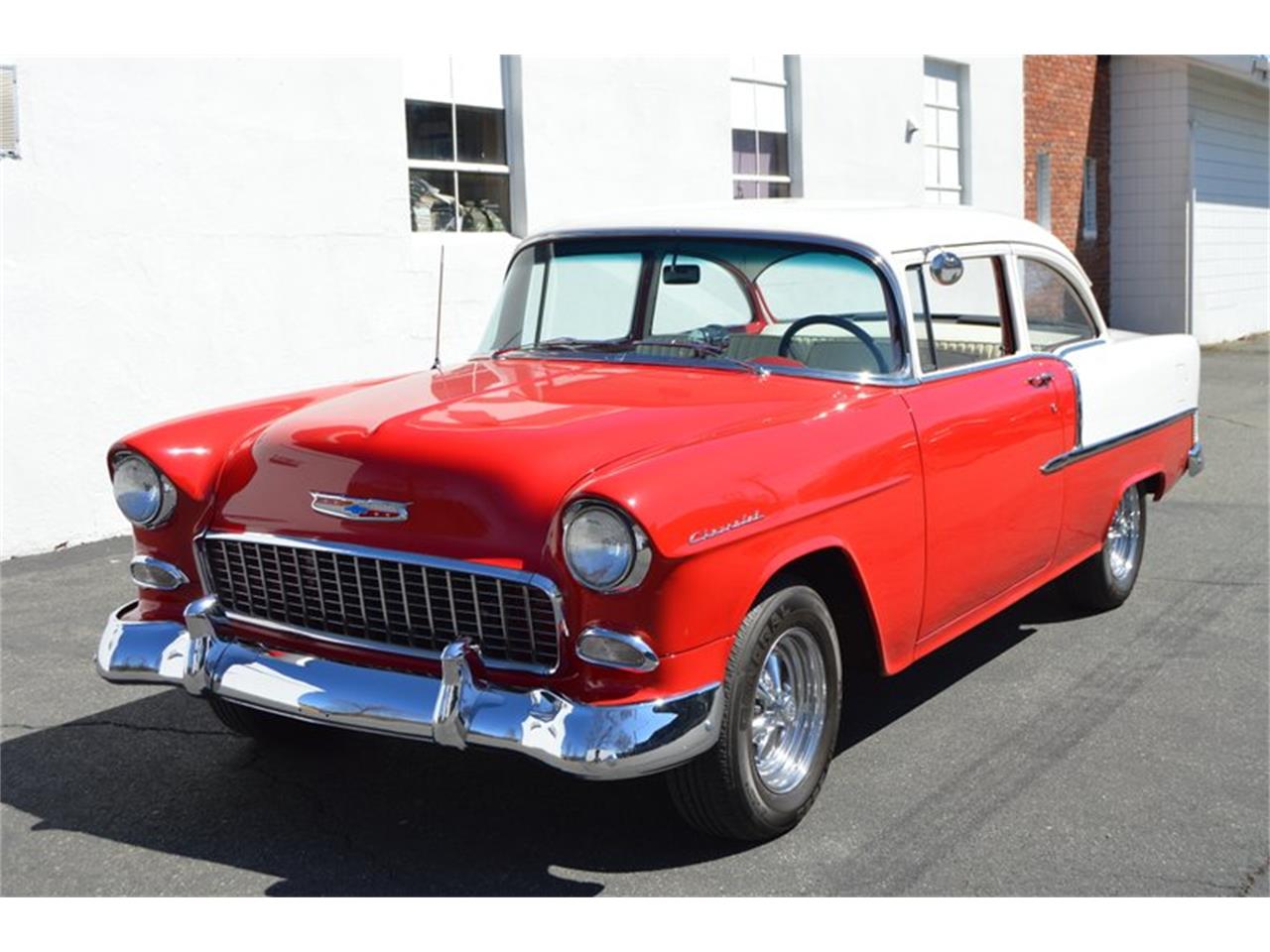 This is a great running and driving 55 with an upgraded drivetrain. The engine is a 350 with a high rise intake, 4 bbl carb, headers, etc. The transmission is a crisp shifting turbo 350. The interior is clean and nice with a comfortable bench seat and a ratchet style floor shifter. It has Cragar SS wheels with newer Black wall tires. The brakes are power with front discs and rear drums. It has power steering.