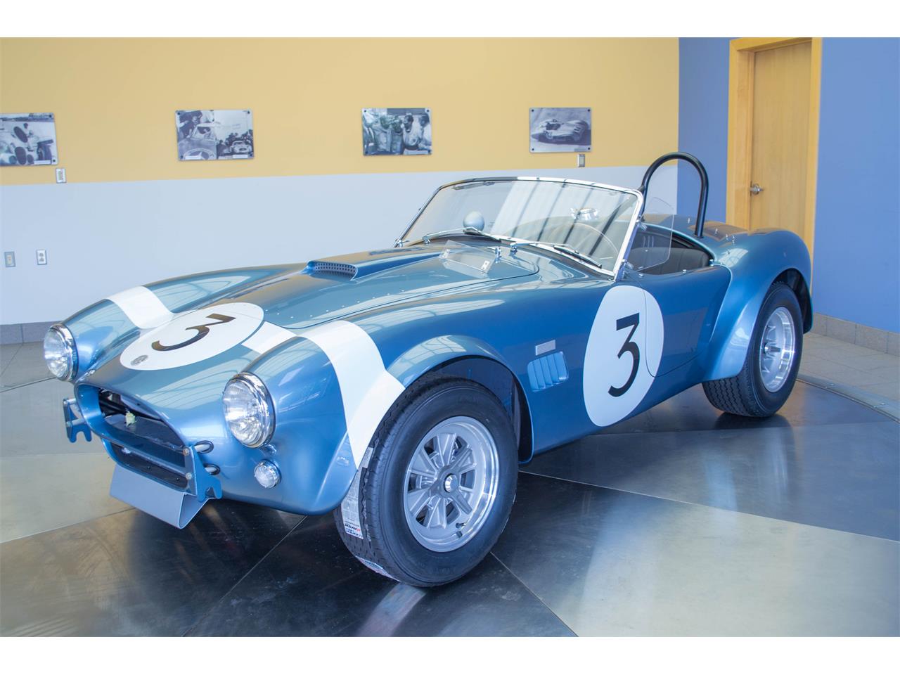 The FIA Shelby Cobra authentic continuation car, not a replica . 1964 spa livery 1964 viking blue shelby color hood mounted bug deflector transverse nose stripe aluminum chin spoiler