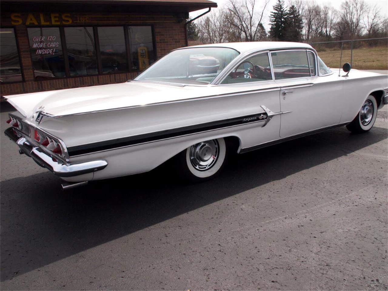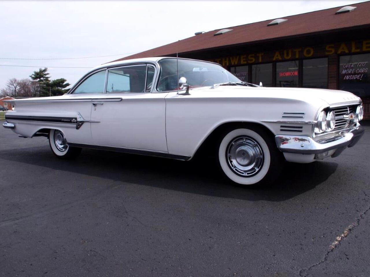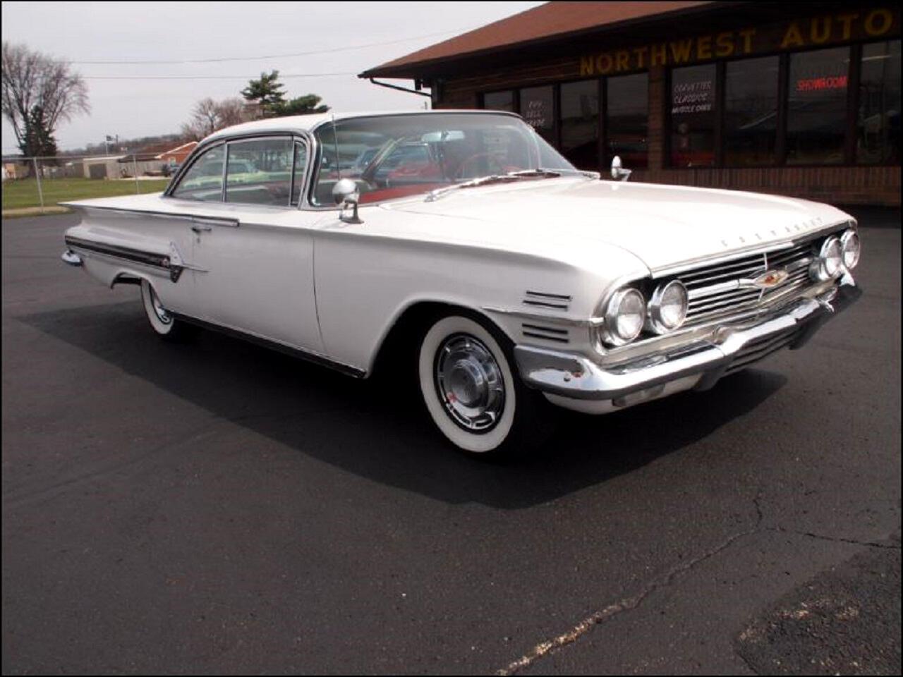 1960 Impala with tri power option. First this is a numbers matching 348 tri power from the factory with original manual 3 speed column shifter and posi traction rear end check it out. Pairing with it s red cloth interior is it s factory Ermine White paint decoded by it s cowl tag. It has been upgraded with power brakes . power steering and vintage air which blows cold.