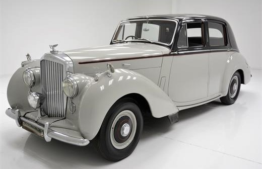 1953 Bentley R Type in traditional British Gray and Black two tone paint with matching Gray leather interior. The Bentley is powered by an iron block,aluminum head straight 6 engine that fires immediately and runs quietly and smoothly. The transmission is a 4 speed manual that engages without struggle or hesitation. The suspension is independent at front with elliptic leaf springs at the rear. Brakes are mechanical drums at both front and rear.