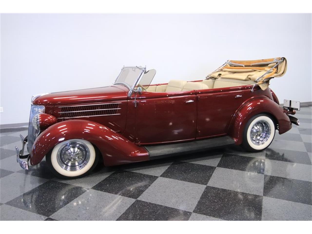 The 1936 Ford Model 68 Deluxe Phaeton was built as a true upper-echelon classic. And while this rare treat is still for only the select few, the slick paint, loaded interior, powerful ZZ4 crate motor, and many other upgrades prove that classic elegance doesn't have to leave you short on power, luxury, or flair. The thin convertible roof of the Phaeton body style is always desirable on a classic. It gives the car a very sporty and European feel with the top up. But more than rarity, you can tell this one is something special just by the way the sunlight hits the paint. The Brandywine color is full of a rich and modern luster.