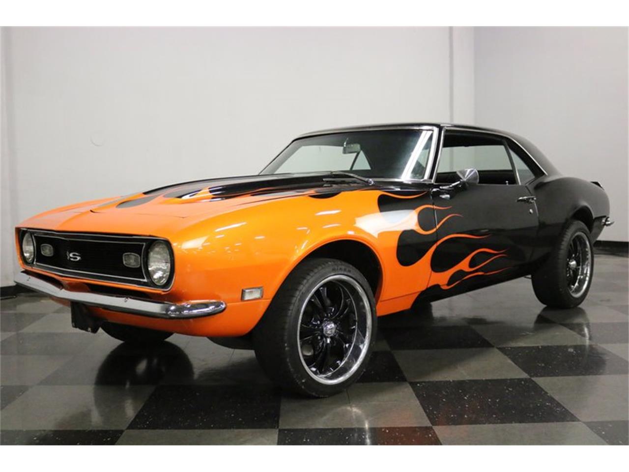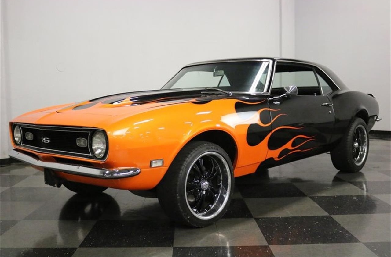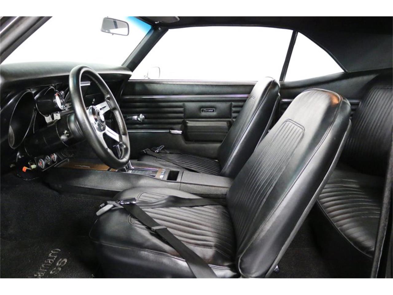 The theme under the hood centers on exhilarating yet dependable power. The 383 cubic inch stroked V8 sitting at the center of the very clean engine compartment starts easily, packs serious punch and teams with a rock-solid 3 speed automatic TH350 transmission. There's a nice collection of Edelbrock components on hand - a sharp looking air cleaner and valve covers enhance the powerplant's appearance, and a 4-barrel carb and Performer intake take its power game up a few notches. 4 wheel power disc brakes now sit at all four corners for plenty of stopping power and with power steering on board, this vintage Camaro is an easy navigator as it prowls the asphalt on a set of 18inch Eagle wheels