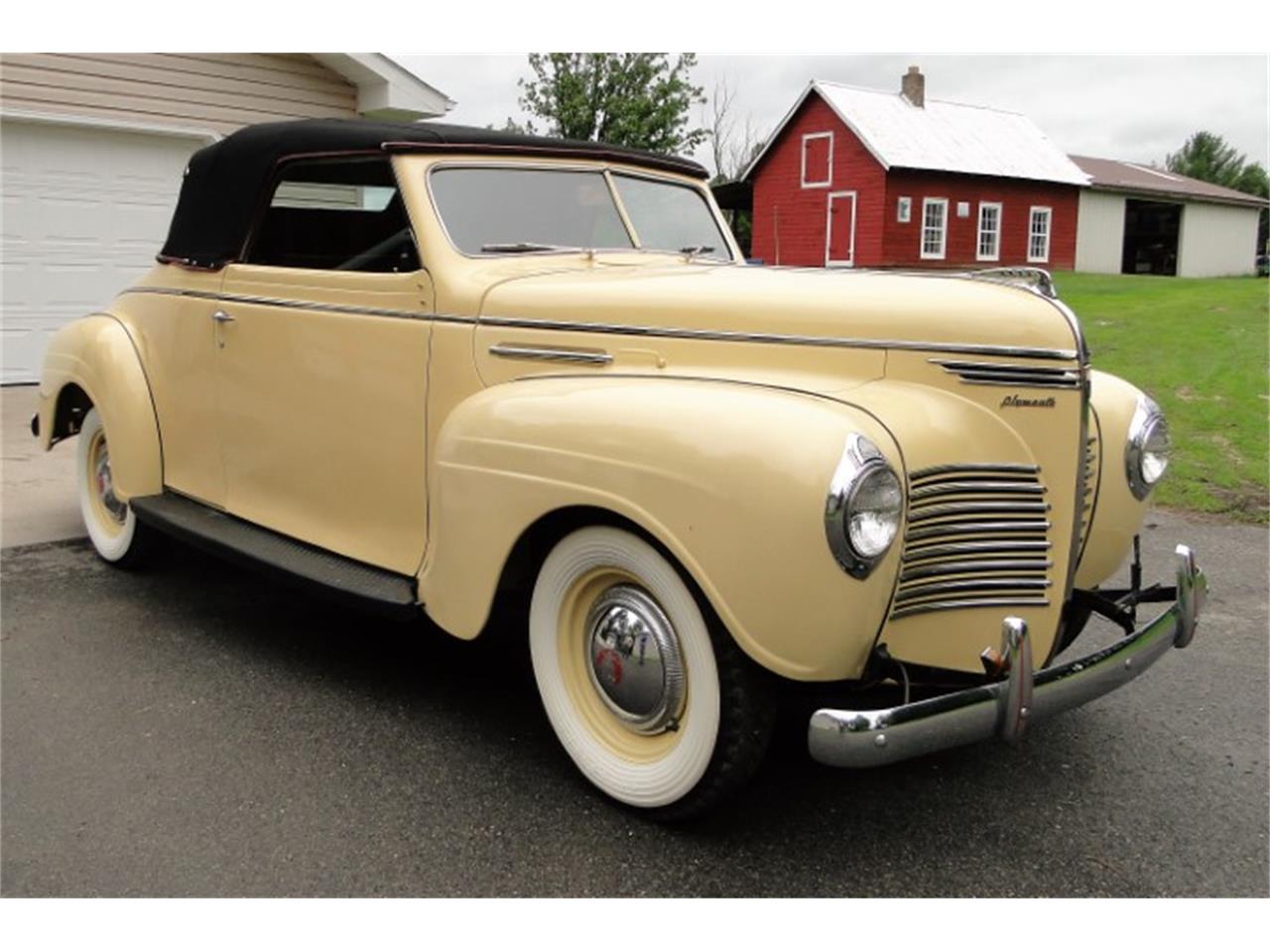 This 1940 Plymouth Convertible is in very good condition. The red leather interior looks like new. It has jump seats in the back. It has the original 201 motor. This car is just ready to turn over 100K on the odometer. The glass wings are not on the car, but are included in the sale. Also included in the sale is the spare tire which has a wood cover for storage in the trunk, a radio and speedometer. This car is straight and solid. There is some cracking and chips in the paint.