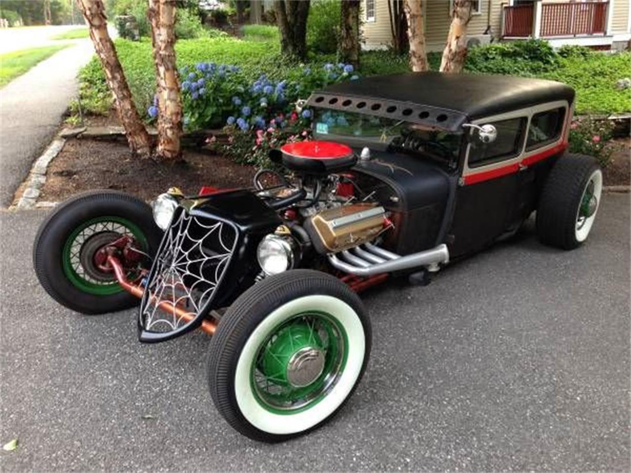 1929 ford tudor rat killer purpose built street machine. custom frame, all new floors, chopped and channeled 12 . powered by a 1954 chrysler hemi with jayster ceramic coated headers. mated to a gm 400 auto tranny with a 9 4 link ford rearend with coil overs.