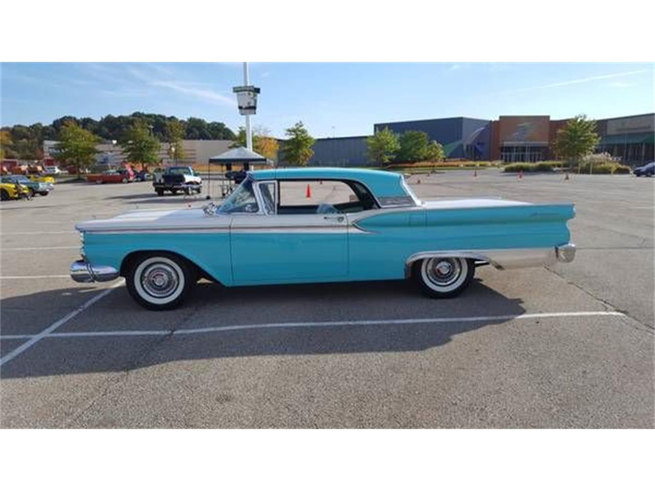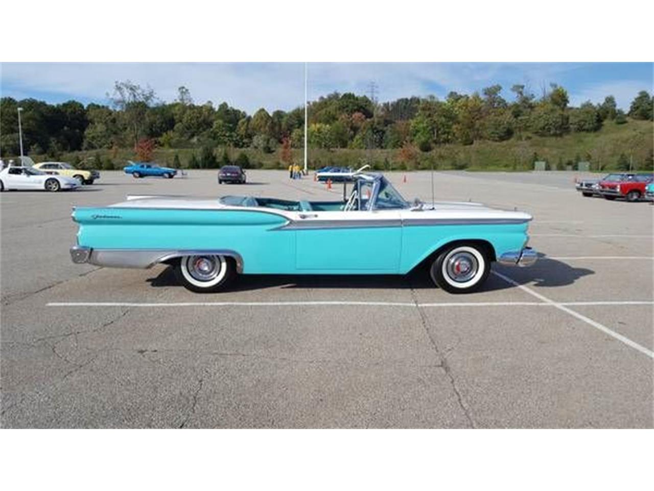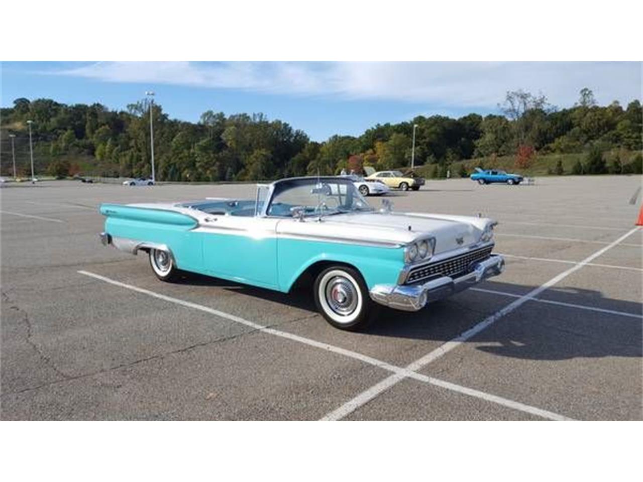 1959 Ford Galxie Skyliner, Indian Turquoise and Colonial White with a matching interior. 352 cubic inch engine, Automatic, Power Steering, Power Brakes, Wide Whitewalls on BF Goodrich Silvertown, 64,172 original mils,