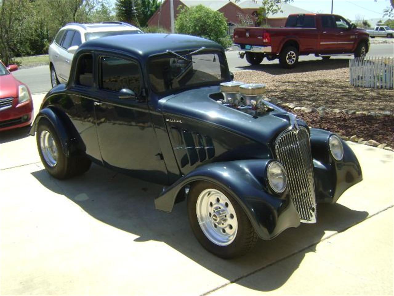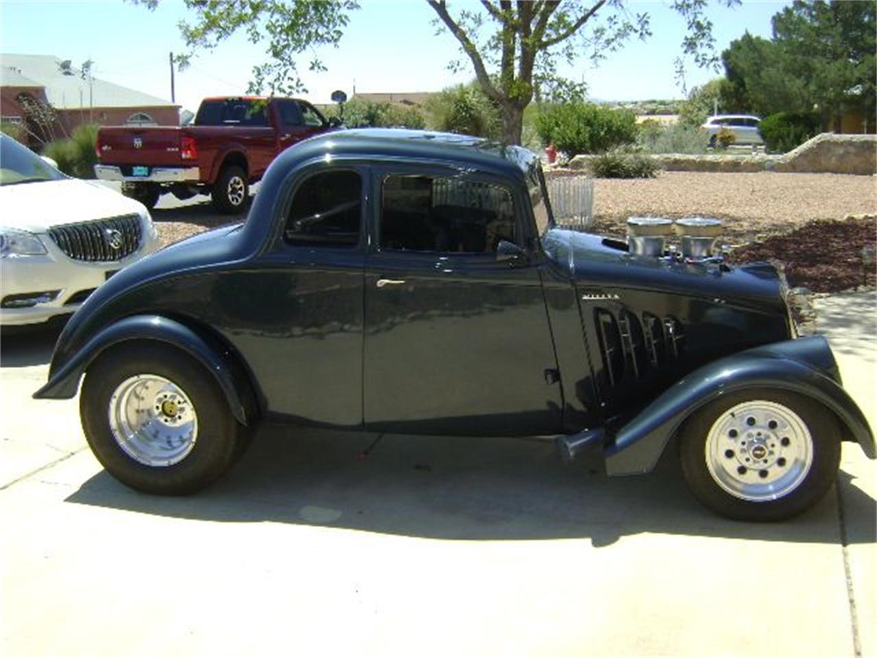 1933 Willy s coupe model 77 fiberglass body in excellent condition 400 cu. inch small block chevy with bds 671 blower and 2 edelbrock 4 s 700r4 auto trans dana 60 posi rear with ladder bar suspension and coil over shocks, 31x16.5 rear mickey thompson rear tires frame is powder coated and looks like it was done yesterday. power windows, power trunk opener, power disc. the front suspension is aldin coilover with gm disc brakes.
