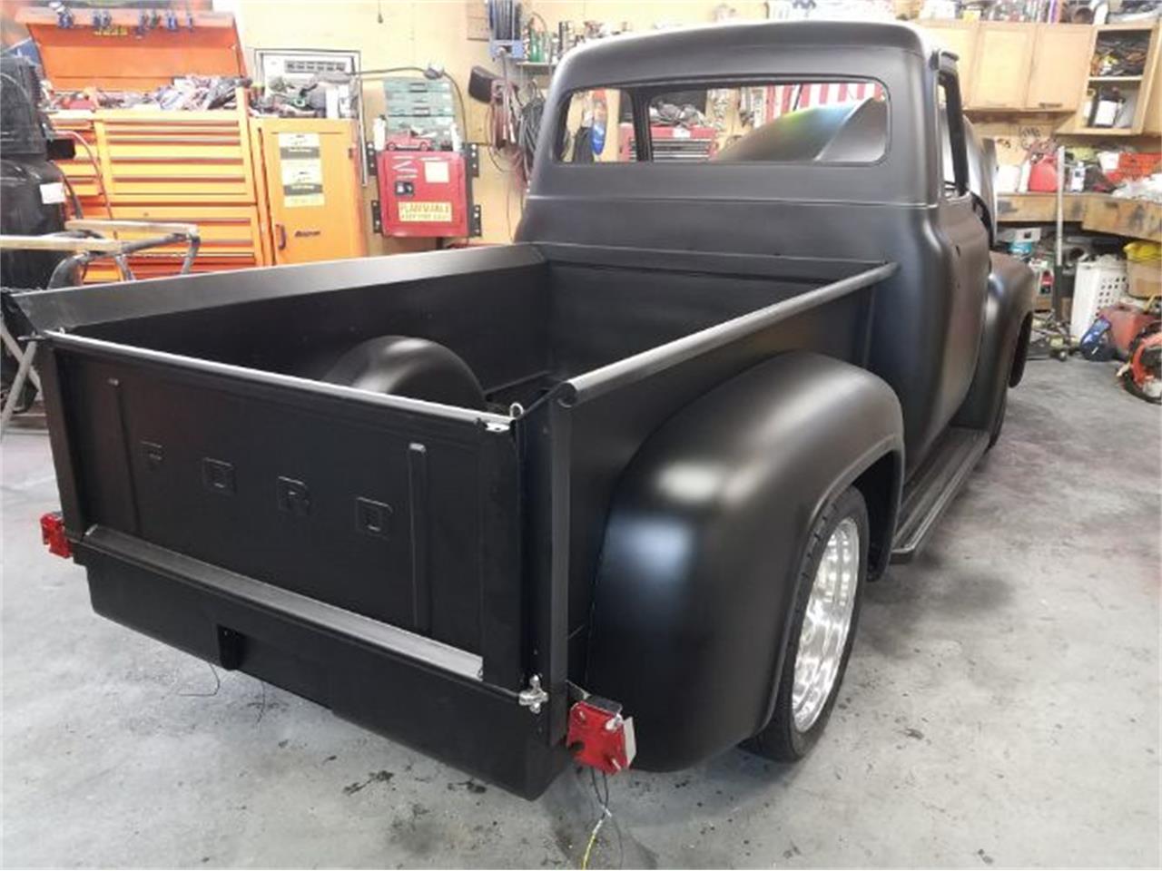 1953 Ford F100 Lettering on doors is vinyl and can be removed easily All sheet metal is New 383 SBC 400 Turbo Has an Manual,Auto Valve body Lokar shift and E brake Ford 9 inch rear 3 73 Gears True Posi. Track Frame has been sandblasted and updated with IFS front suspension with Tubular upper and lower controls Arms Power Rack and pinion steering rear suspension has an 4 link 4 bar set up with coil overs Power brakes Disc brakes in the Front and 11 drums in the rear. 15 gallon aluminum fuel cell. Everything on Truck is completely brand new. all the fenders front and back the bed hood doors inner fenders grill harness Etc. Etc.. are all brand new and have been replaced.