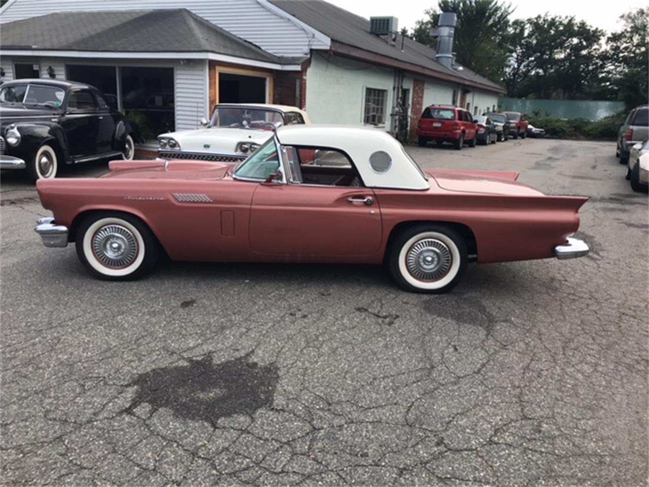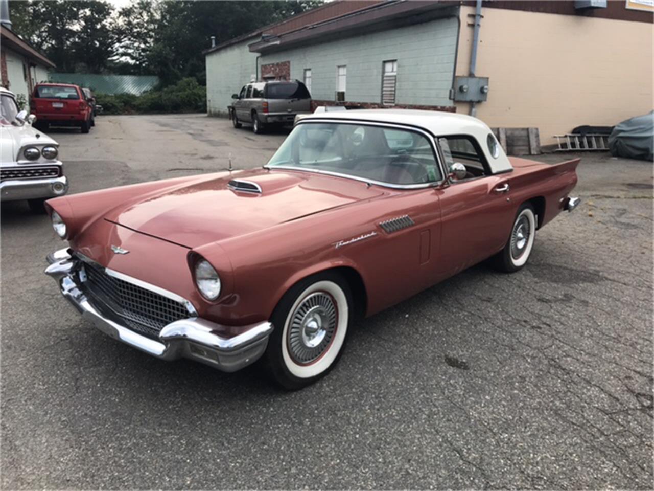 1957 Ford Thunderbird . D bird 312 V8 with automatic transmission. Beautiful Thunderbird Bronze exterior, with white hardtop. Nice bronze interior, with new carpet, seat covers, door panels, and nice padded dash. options include power steering, engine dress up kit, wide white walls, and town and country radio.