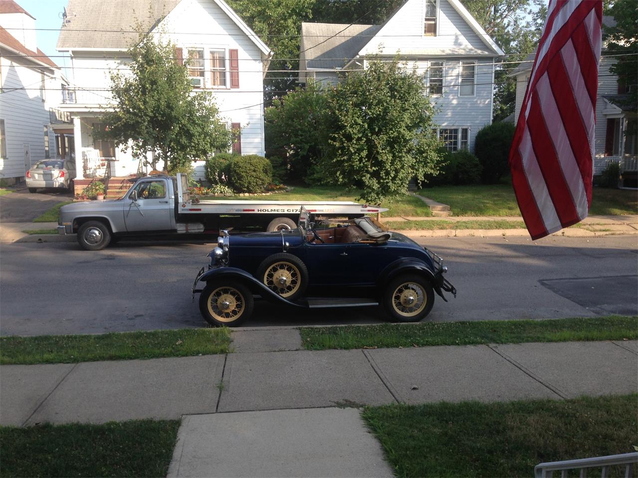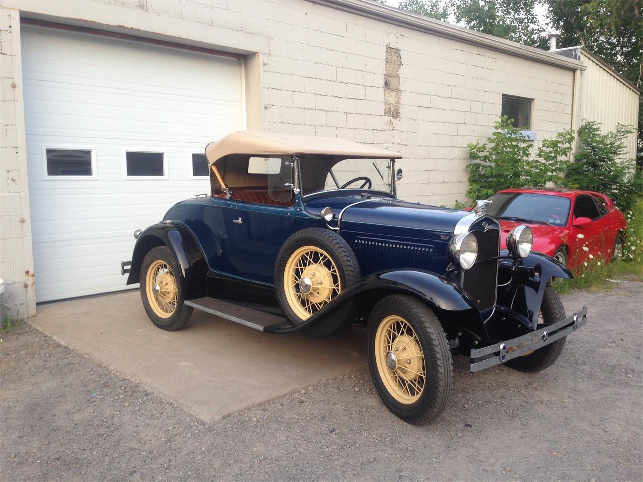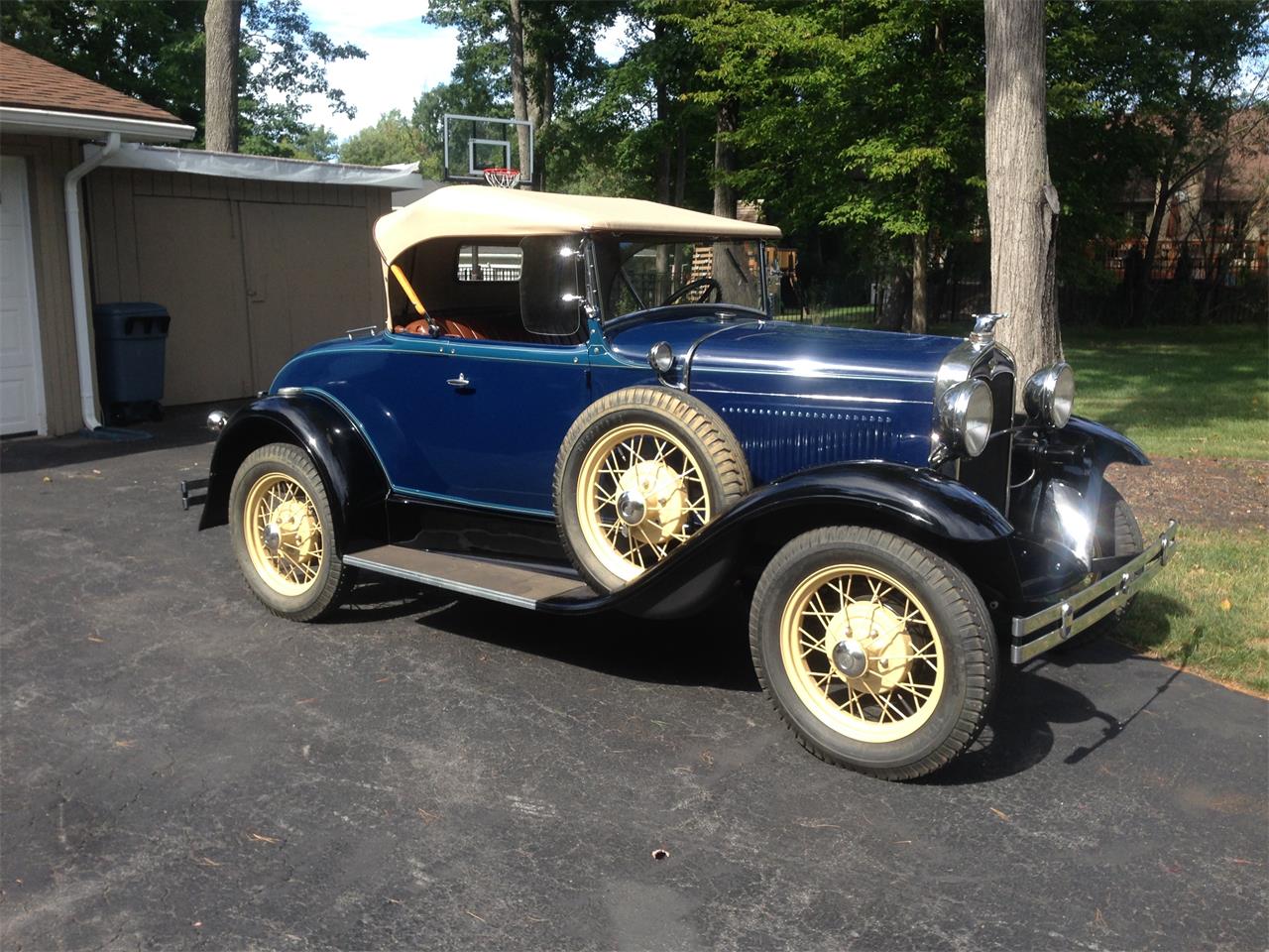 1931 Model A Roadster with rumble seat. Washington Blue With Saddle brown interior.