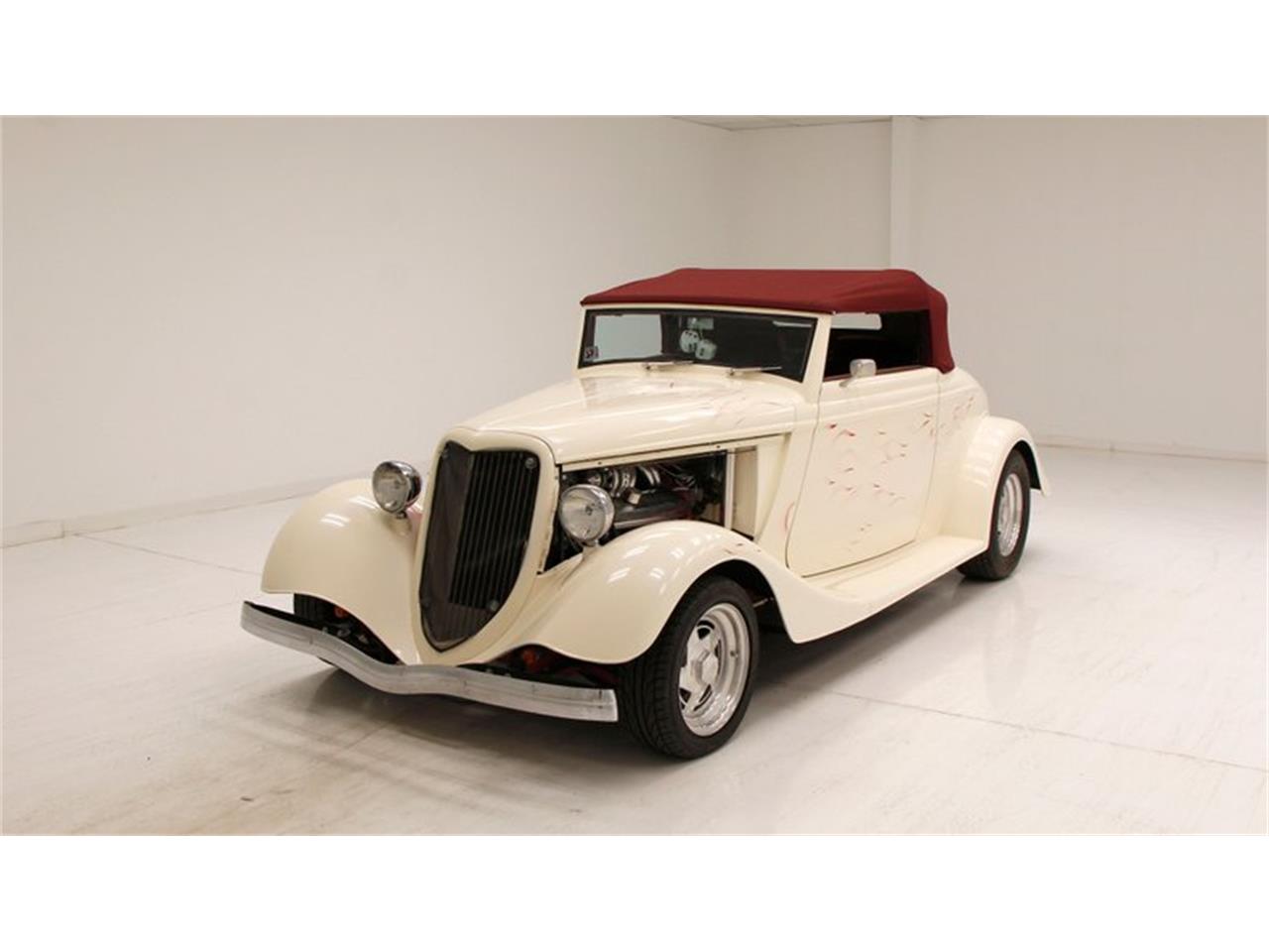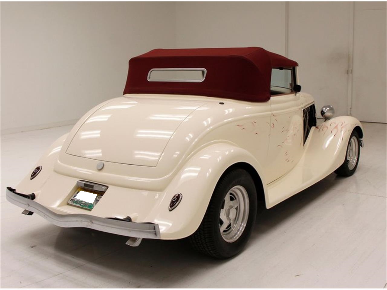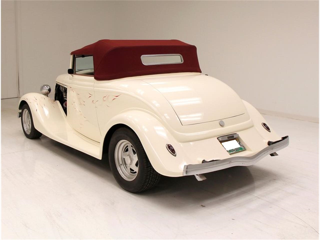 1934 Ford Cabriolet 350ci crate engine in V8 format, and this has tuned port injection on top. On the back is a 700R4 4-speed automatic transmission and the rear axle utilizes an 8.8-inch Ford rear. Frame is solid, with no rust. Power disc brakes are on the front, and power drums on the rear. Glasspacks make for a wonderful sound to this car when on the run. Weld wheels are all around and are wrapped in radial 195/50R15's upfront and big 245/60R15's on the rear.