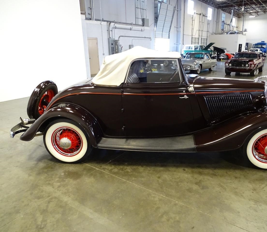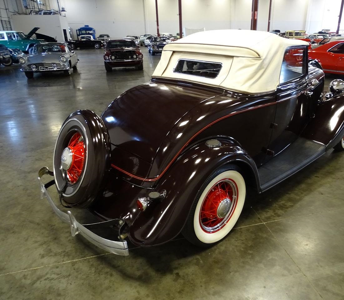This 1934 Ford Cabriolet Convertible for sale is a timeless piece of art. Powering this mighty machine is a stout 221CID V8 that has rumble of a big block but the fuel sipping quality of a small flathead V8. Backing this powerplant is a 3-speed manual transmission. The interior of this magnificent 1934 Ford Cabriolet Convertible for sale is a soft and plush vinyl brown that meshes perfectly with the exterior color. Options on this 1934 Ford Cabriolet Convertible for sale include: Wire wheels that are wrapped in whitewall bias ply tire, comfortable bench seating, manual convertible top.