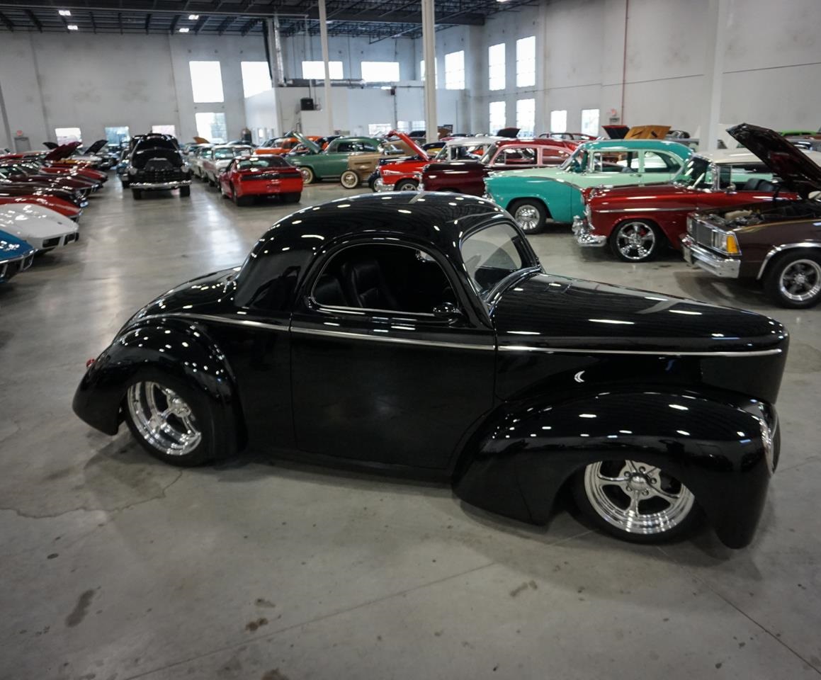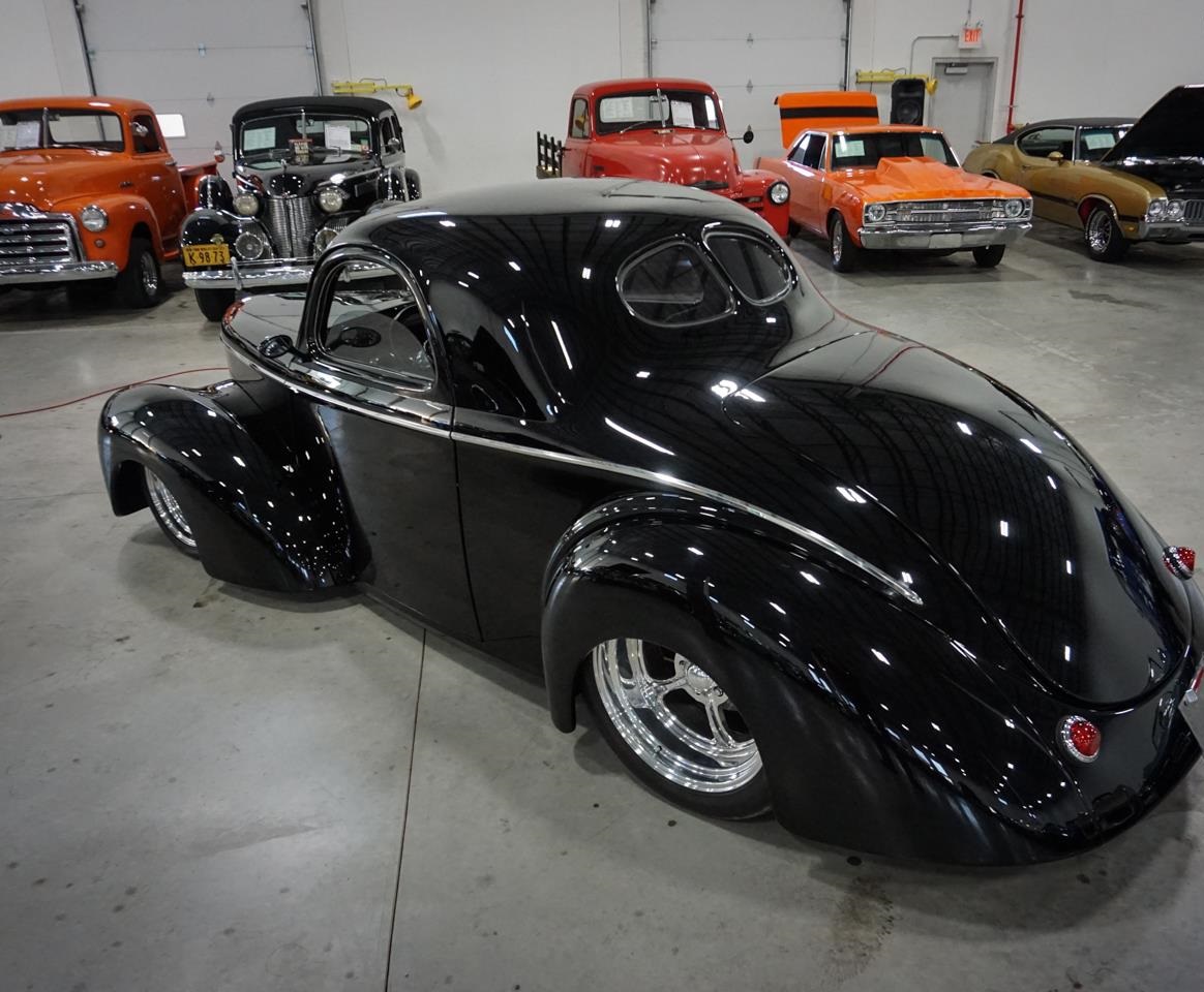 This glossy black beauty is built on a full tubular frame and has a 392 cubic inch hemi V8 crammed under the hood of it providing legendary amounts of horsepower through a 727 Torqueflight 3-speed automatic transmission back to a Ford 9" rear axle outfitted with a limited slip differential carrier and a 3:23 gear ratio. The mean stance of this car is completed with lowering the car and sitting it on a set of Billet Specialties staggered wheels wrapped in low profile radial tires.