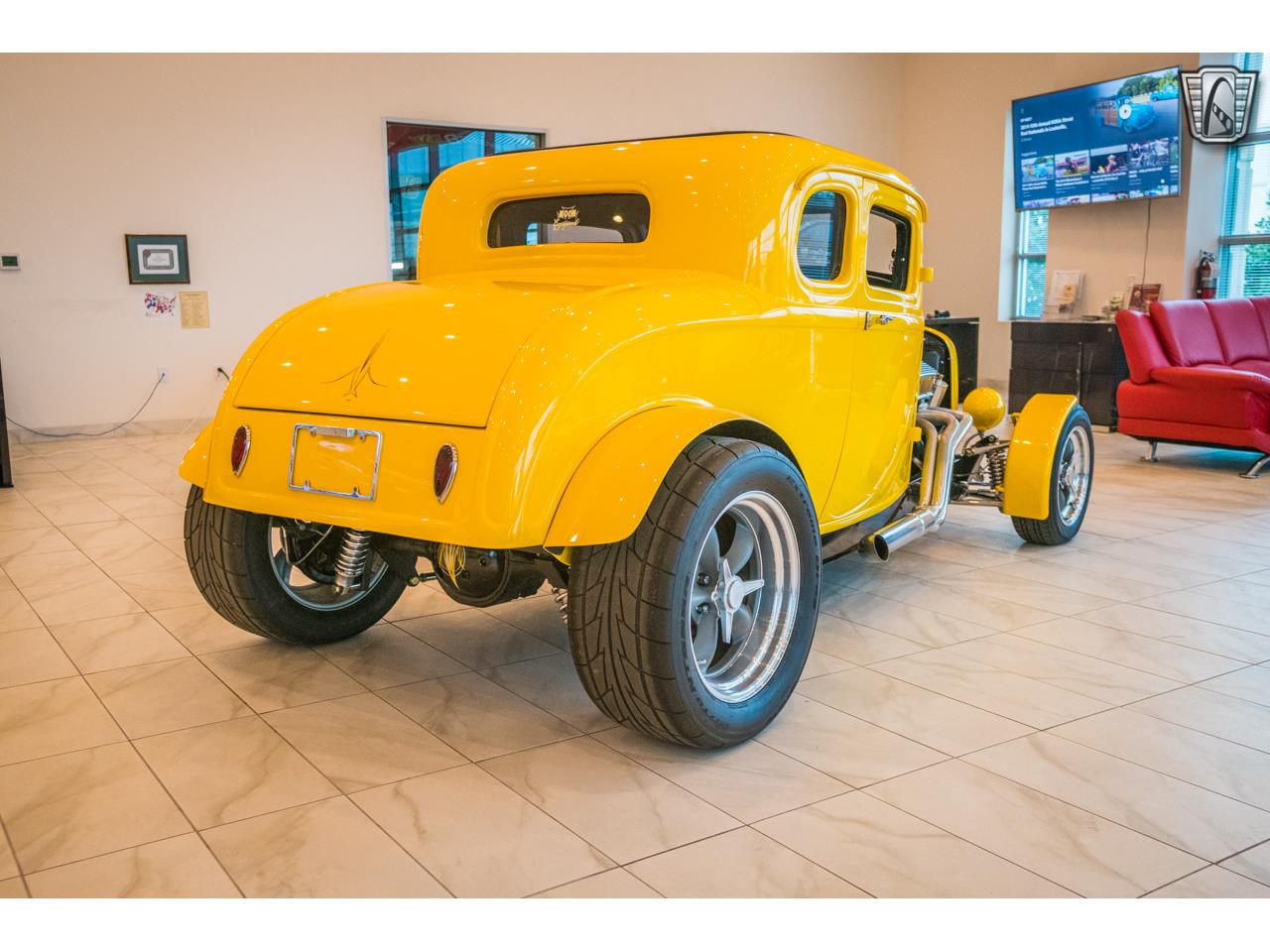 1932 Ford 5-Window Coupe. Driven by a fresh 502 CID V8 crate, power is plenty and readily available when you want to have some fun. Shift your way through the powerband with the Richmond 5-speed transmission. Controlling all the power as it gets to the ground is a Posi-trac Curri 9" rear end with 3:90 gearing. With a Heidts front end, Adjustable coil over shocks in rear, tubular upper and lower control arms, and custom tubed chassis this hotrod handles very well. Front disc brakes and drums out back provide enough to come to a solid stop in a timely manner. The exterior of this car makes it very hard to miss. A vibrant yellow paint demands attention and certainly gets it. The top has been chopped slightly but still has plenty of room for most to fit inside. The interior is nicely done in a black vinyl because everyone knows black and yellow go well with each other. Tucked alongside the passenger seat you will find a Bluetooth stereo set up which even allows phone calls for hands free driving.