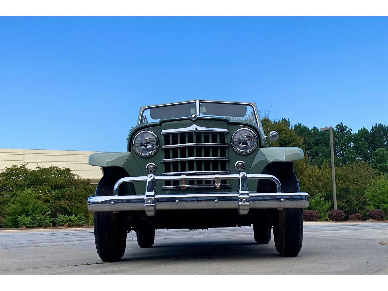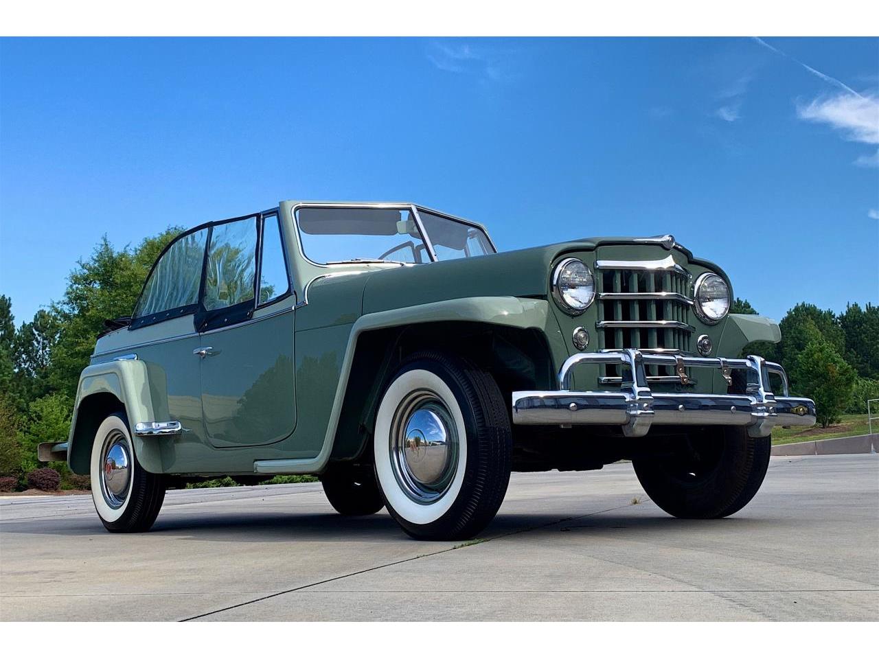 Beautiful 1950 Willys Jeepster. This 1950's Willys Jeepster is packing the more powerful Inline 6-Cylinder motor which provides plenty of scoots for this Jeepster to move around town. The 6-Cylinder is paired to a 3-Speed Manual "3 On The Tree" transmission. The exterior of this beautiful Willys is sporting a coat of two-tone Green which has been painted to factory gloss. The interior of this gorgeous Jeepster is wrapped in a newly upholstered black vinyl which matches the black Convertible top and window panels perfectly. Options on this Jeepster include Manual Convertible Top, Chrome Willys Hub Caps, and Wide White Wall tires which give this Willys its original appeal.