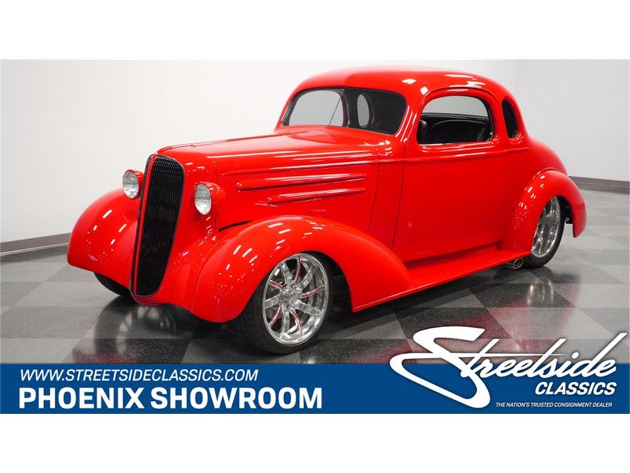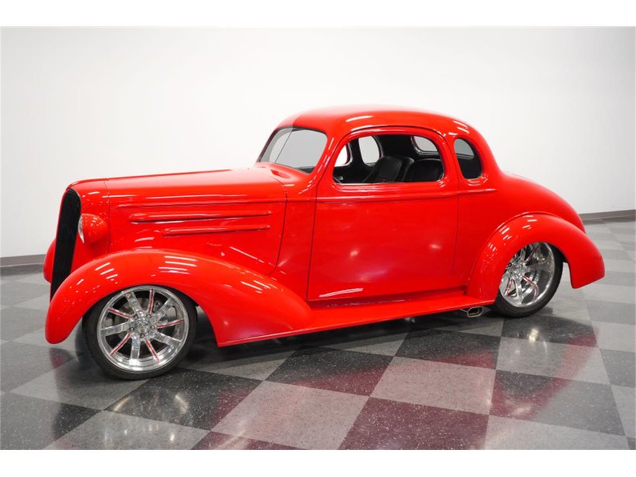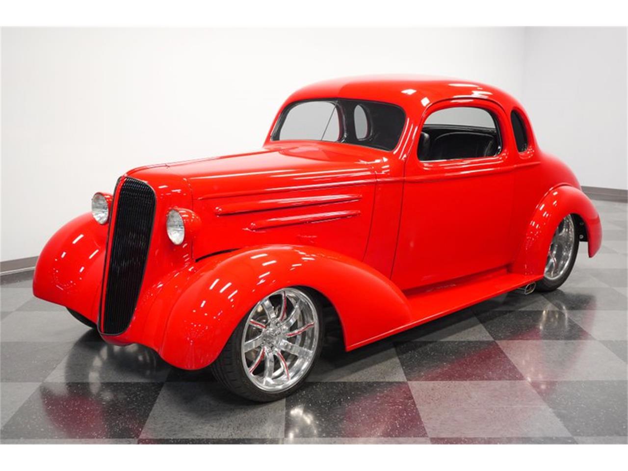 A slick build from every angle, this 1936 Chevrolet 5-window is a sleek red fuel-injected coupe.