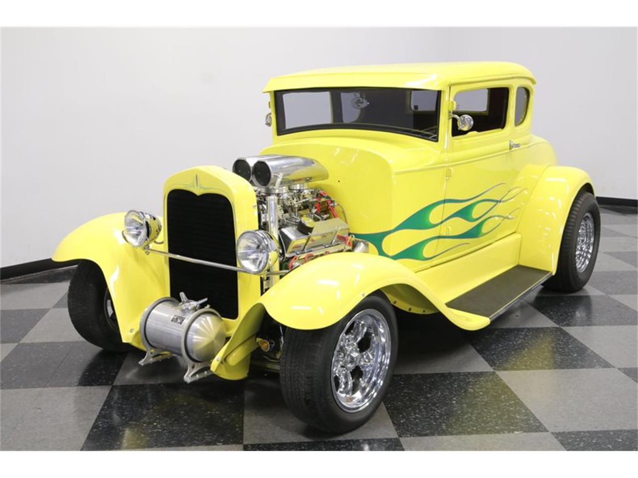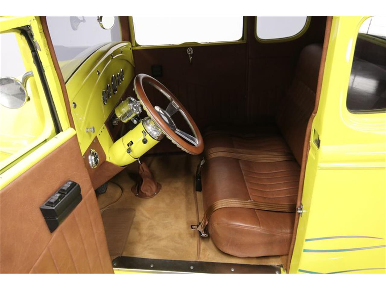 This hot rod has hardy Chevy 350 small block V8 power, and a motor this nice deserves to be on display. They spent a ton on polished components, including the valve covers, alternator, steel-braided lines, and the cool dual-scoop air intake. And as people check out the motor, they're going to easily see the twin Edelbrock four-barrel carburetors that make this a truly powerful setup. Plus, there are more performance upgrades like the Edelbrock intake and shorty headers feeding the rumbling dual exhaust.
