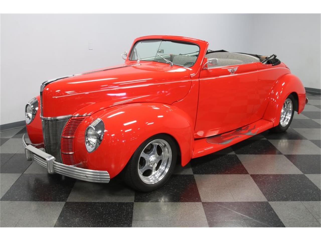 With an upgraded A/C interior, upgraded suspension, upgraded V8 power, and a vibrant color combo, this 1940 Ford Deluxe Convertible Coupe makes quite an impact wherever it goes.