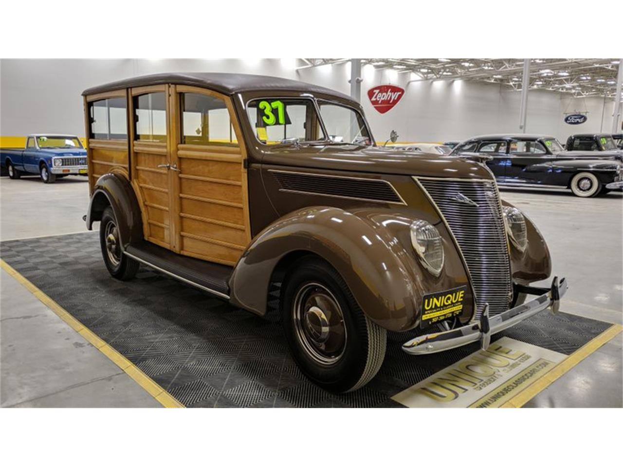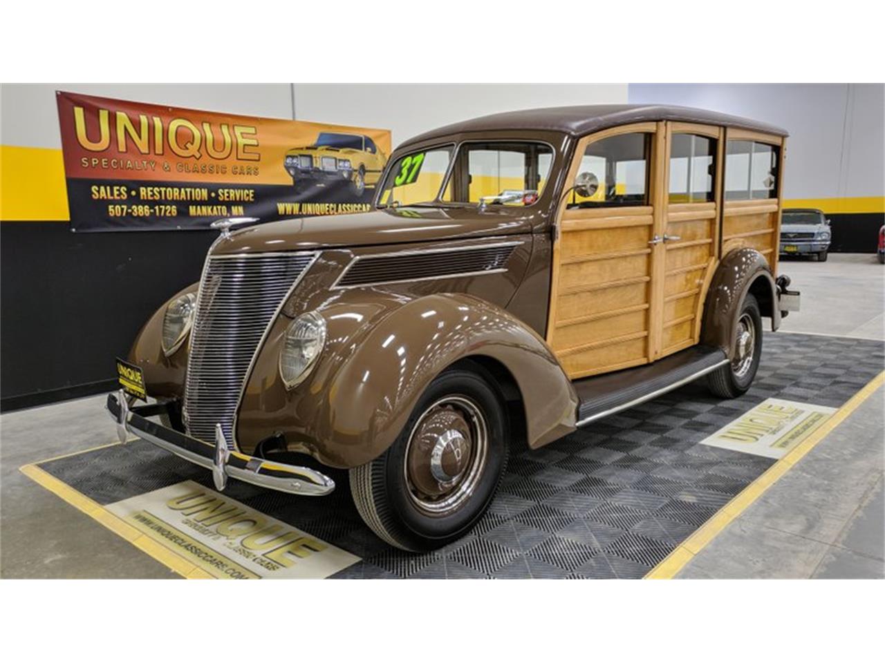 1937 Ford Model 78 Woody Wagon finished in brown paint.