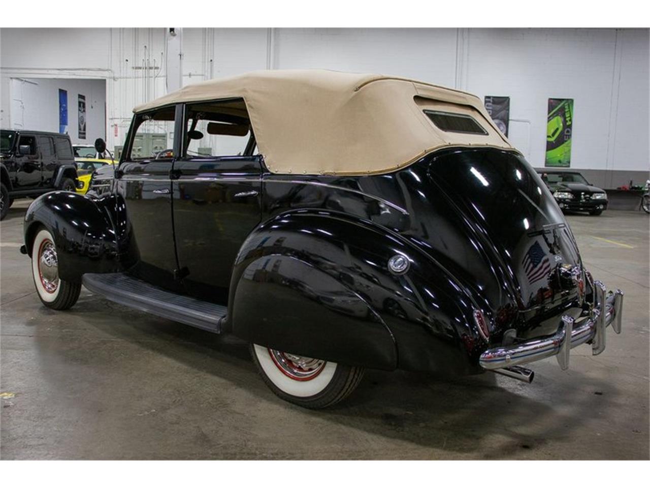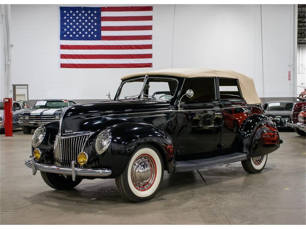 GR Auto Gallery is pleased to present this exceptional 1939 Ford Deluxe Convertible! This immaculate vehicle comes in a deep black paint job complimented by a clean tan interior and matching convertible top.