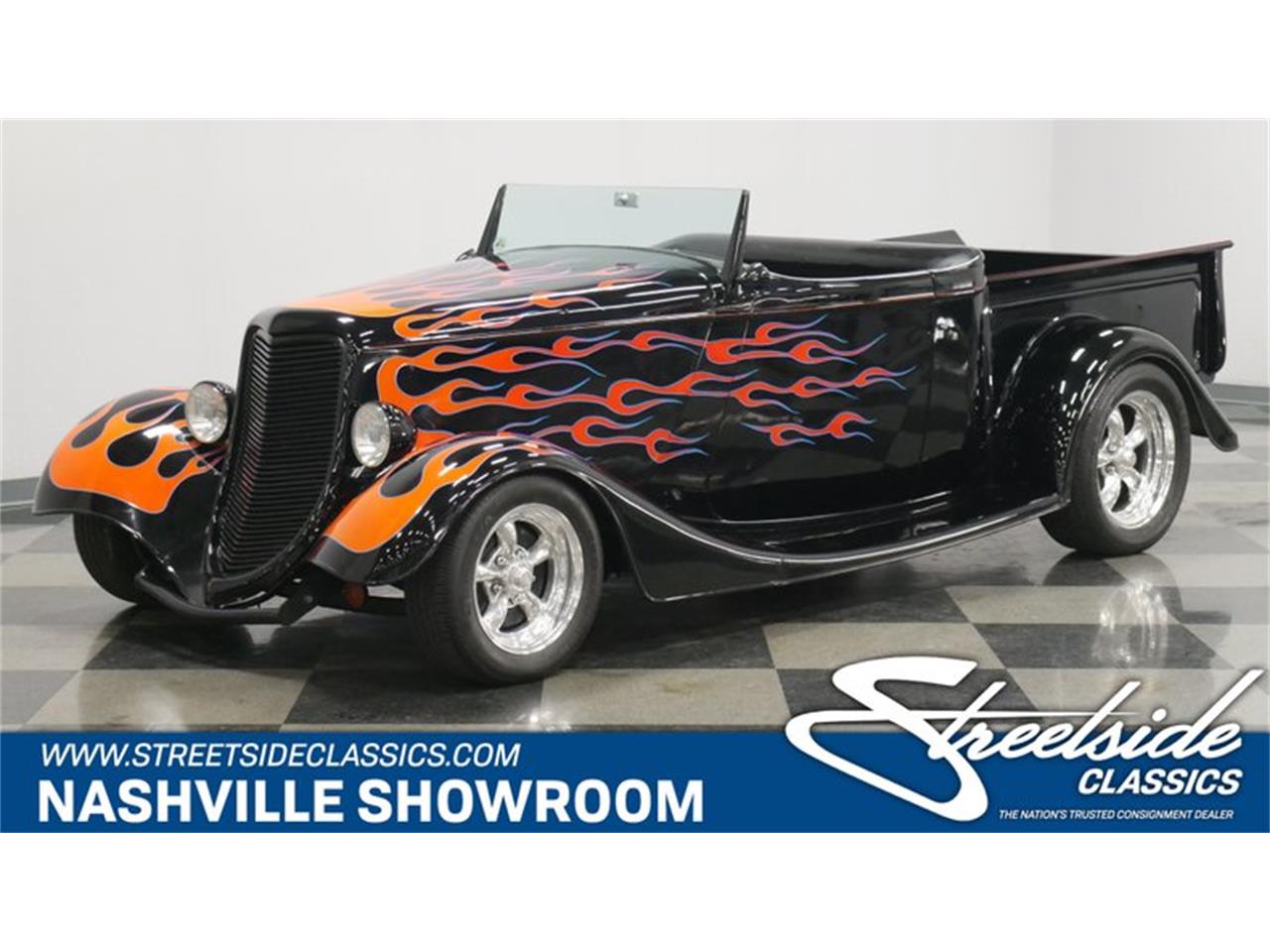 This 1934 Ford Roadster Pickup has the lowered stance and flame-kissed looks of a true street machine.