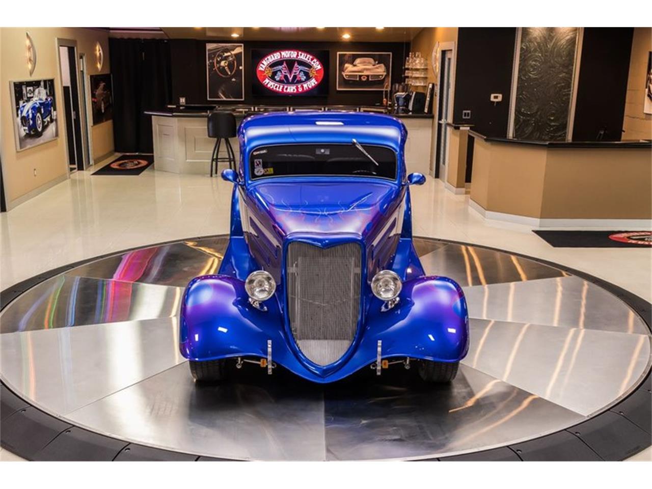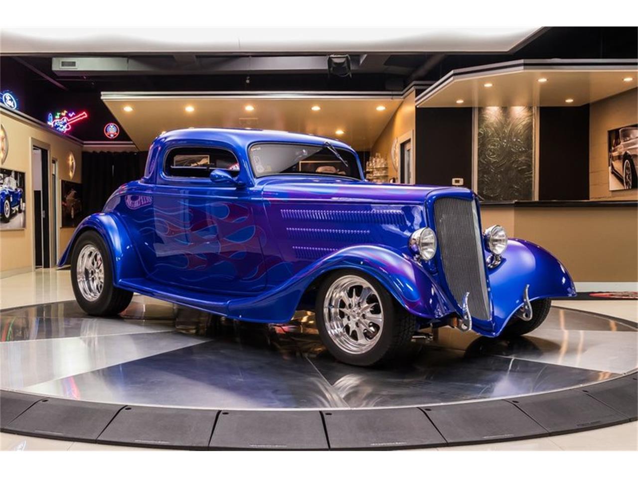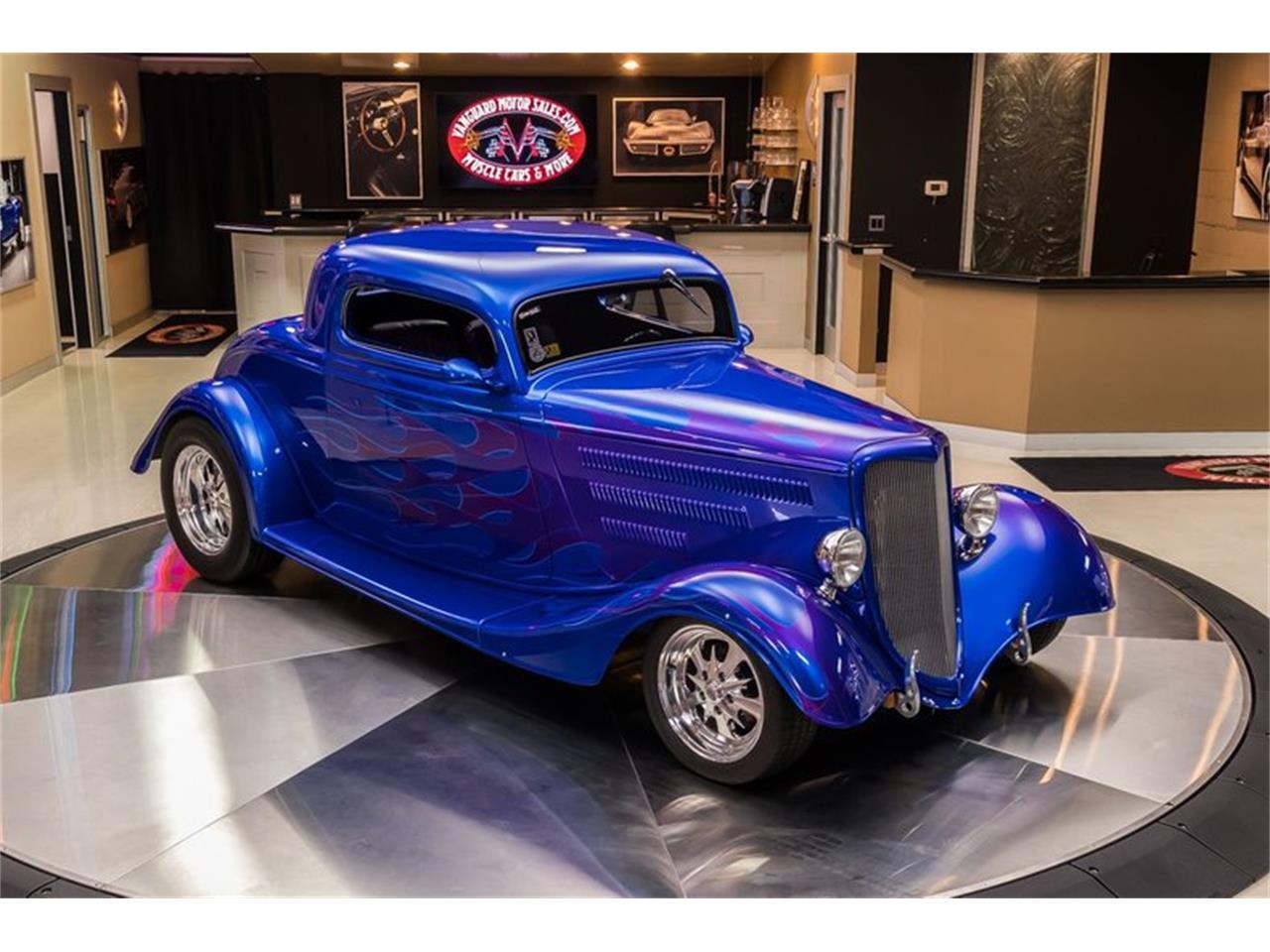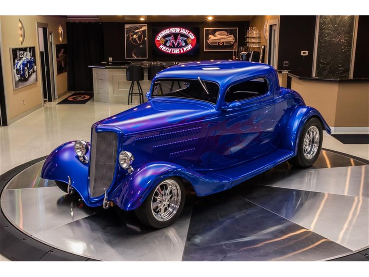 Check out this awesome 1934 Ford Coupe Street Rod! This 34' Ford is sporting a beautiful body, glossy Blue Paint finish, Custom Painted Flames with Pinstriping along the body, Custom Airbrushed Rat Fink on the decklid, Custom Purple Interior, Suicide Doors, Billet Aluminum Wheels, along with a Full TCI Chassis underneath! Under the hood sits a 350ci V8 Crate Engine mated to a TH350 3-Speed Automatic Transmission! The engine bay of this 34' Ford looks amazing and you're sure to turn heads at your local car show thanks to the multitude of Polished Aluminum Components on this coupe! Power is put to the pavement through a Ford 9'' Rear End with an Open Differential.
