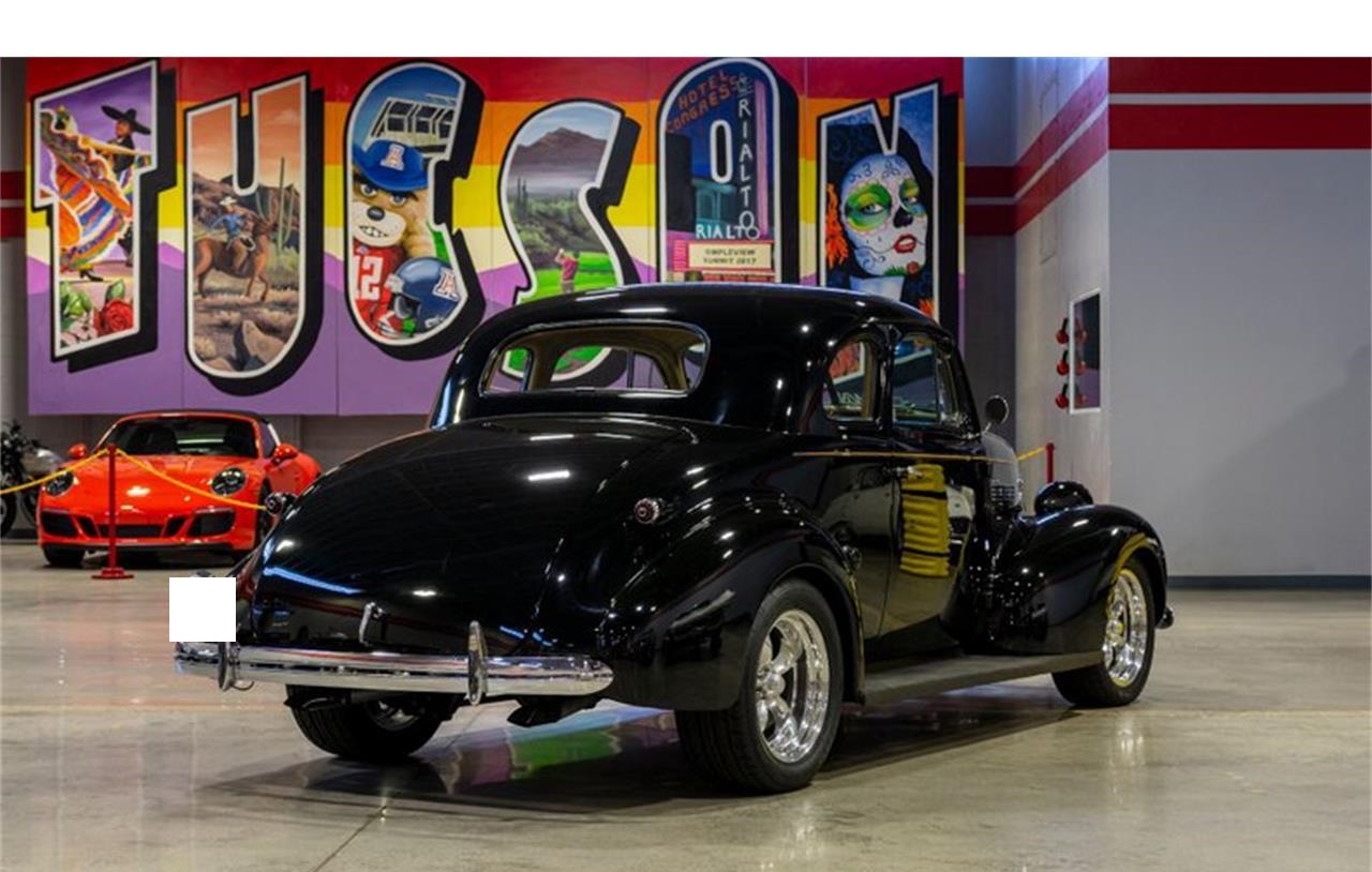 This is one stunning black 39 Chevy Master Custom Coupe featuring an all steel body.