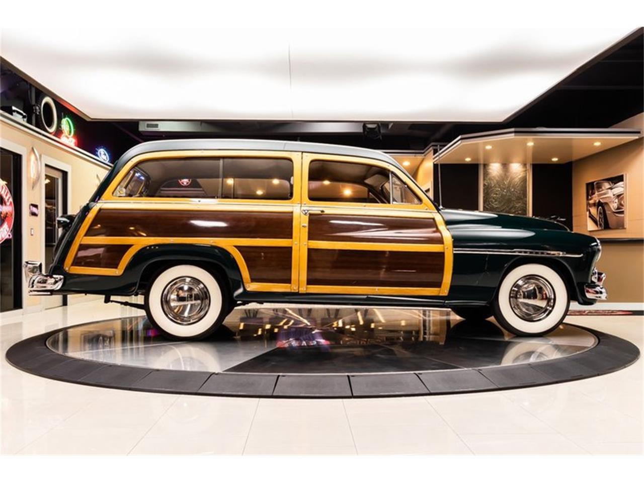 1950 Mercury Woody Wagon. This Mercury has beautiful Woodwork along the body, a glossy Dark Green Paint finish, Brown and Tan Interior, Whitewall Tires, Spare Tire with Cover, Fold Down Tailgate, Dual Exhaust, along with plenty of Polished Stainless Steel and Chrome Components all around. Under the hood sits a Mercury 255ci Flathead V8 Engine mated to a Flathead Sideloader 3-Speed Manual Transmission!