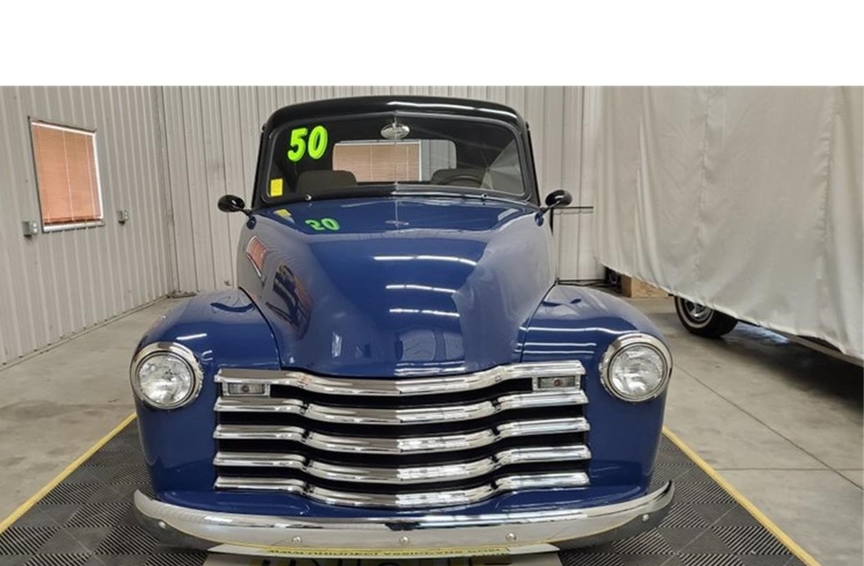 1950 Chevrolet 3100 Pickup Street Rod finished in blue and black paint.