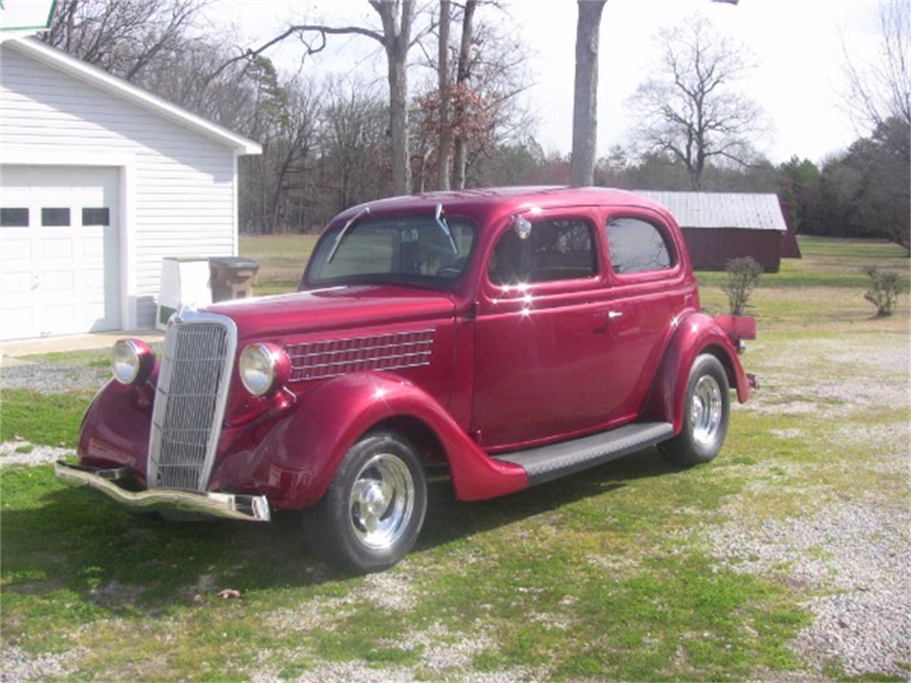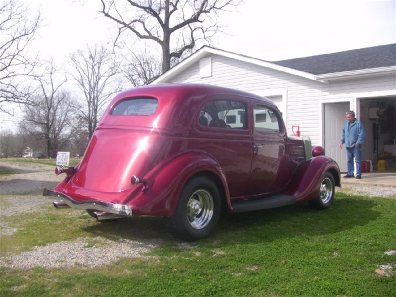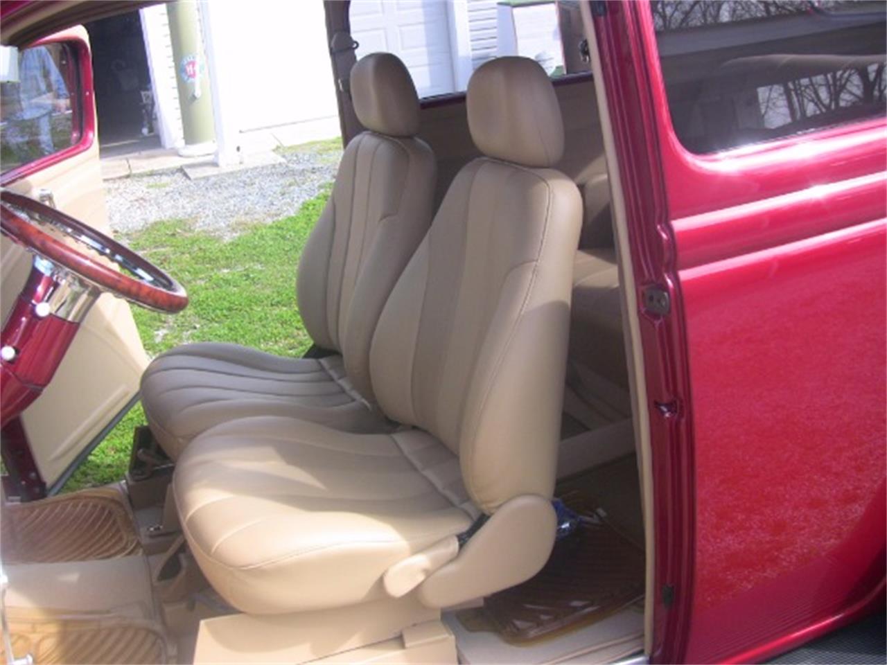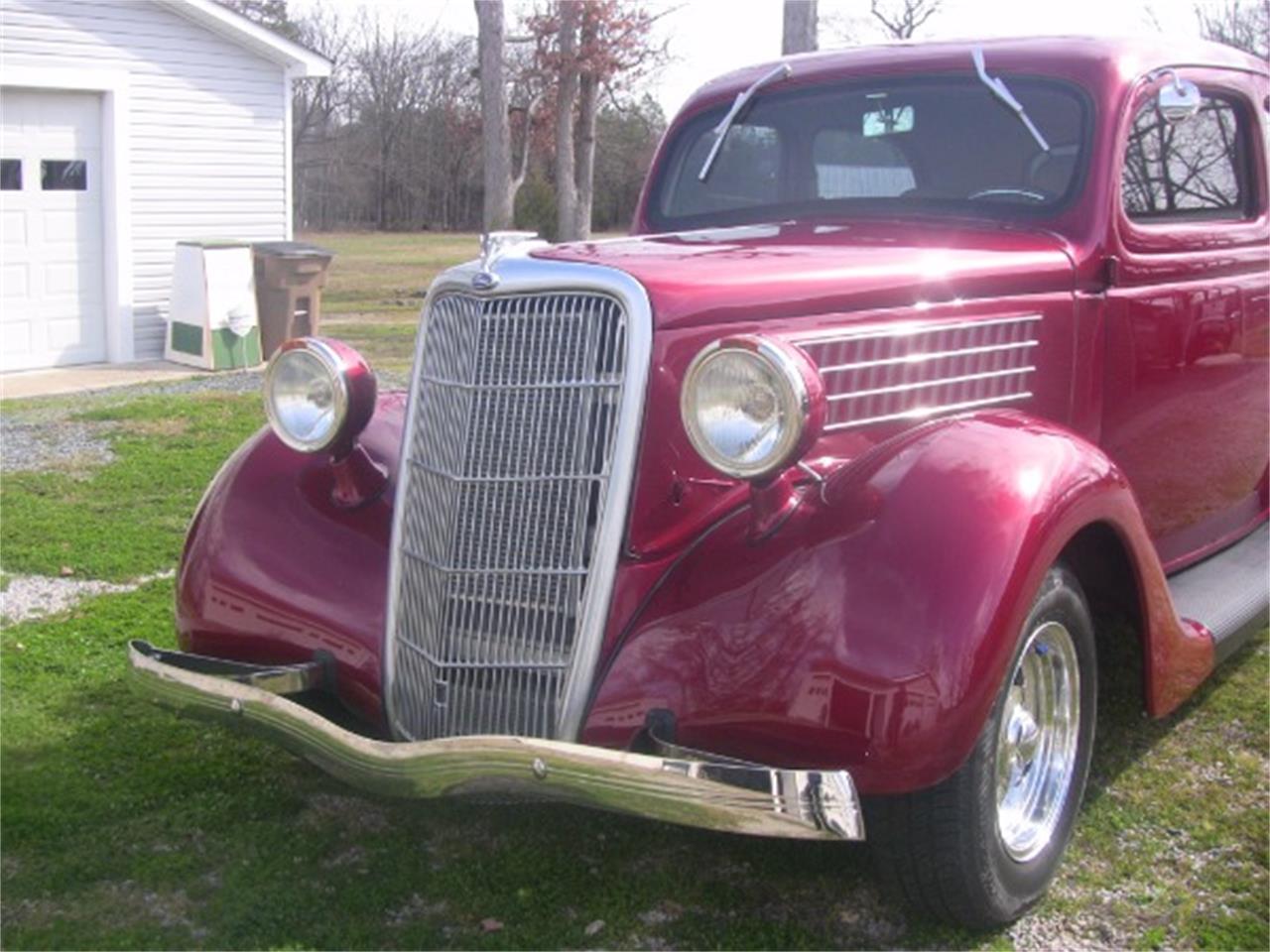 Classic 1935 Ford Slantback. The steel maroon exterior is in excellent new condition and paint has no visible flaws. All chrome and trim is sharp and in shiny new condition.The two toned beige leather bucket seat interior is brand new and all interior components are new. Steering wheel is Billet and the door and window handles are as well. All interior components are new and in excellent working condition.Engine is a 327/330 HP Chevrolet crate engine paired with a 350 automatic transmission. The chassis is a Fat Man rolling chassis.Options include power steering, power brakes, Vintage AC and Heat.This is a top-notch custom 1935 Ford that runs and drives with excellent performance.