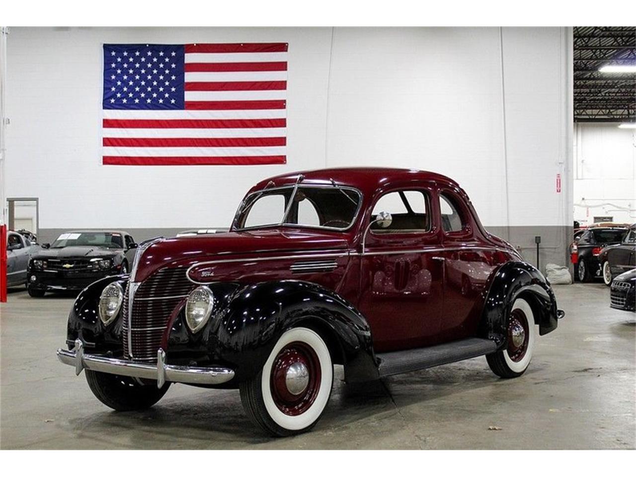 1939 Ford Standard Coupe! This immaculate classic comes in a stunning maroon and black paint job complemented by a spotless beige interior.