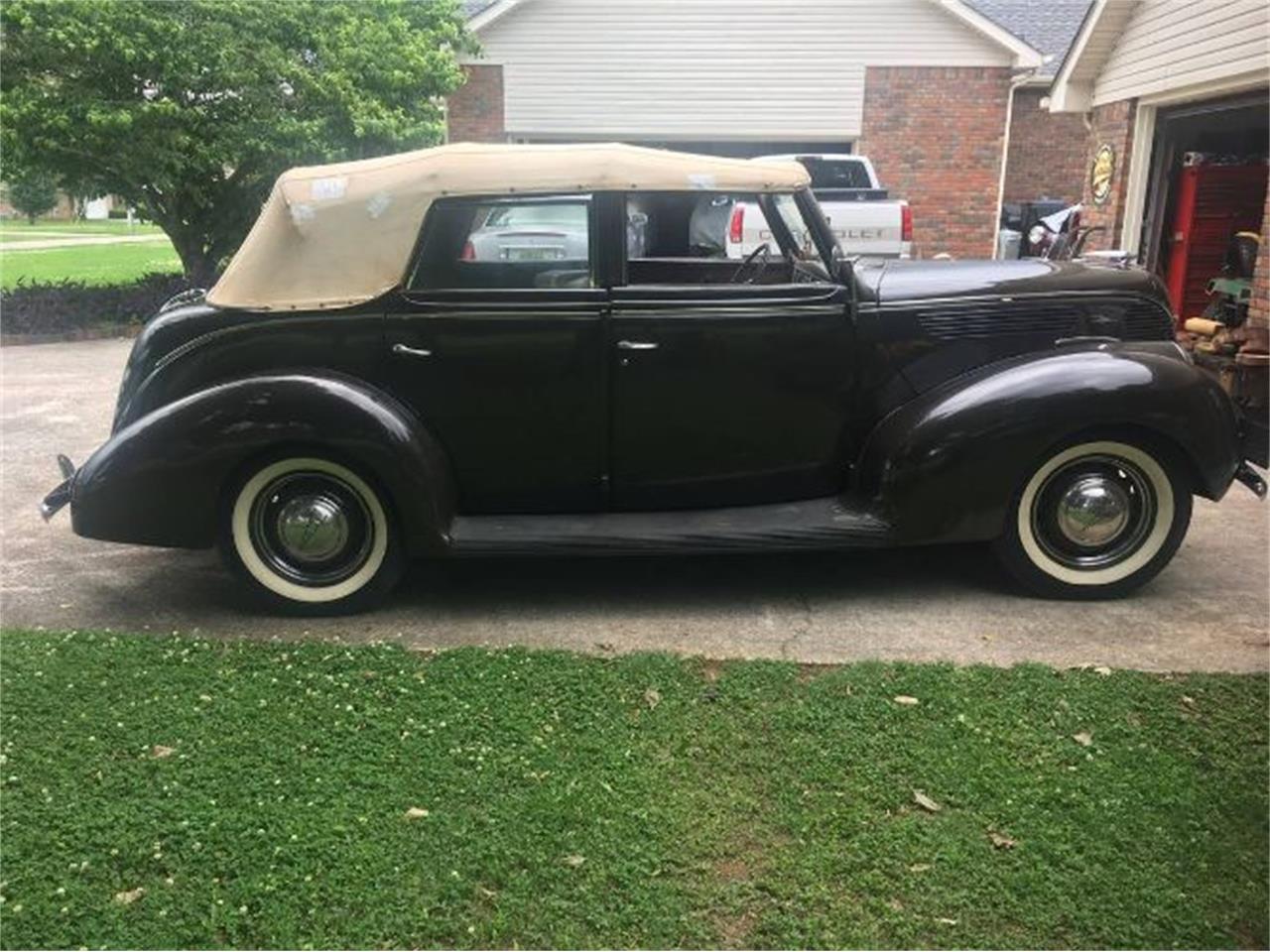 This 1938 Ford Deluxe, 81A 4 door convertible is a very rare car, only 2,743 were produced. The engine is the original V8 Flat head rated at 85 horsepower@ 3,800 RPM. This car has 94,440 miles and a manual transmission. This car came with a lot of options: fender skirts, bumper guards, radio, clock, glove box, cigar lighter, side mirrors, dual wipers, dual tail lights, amber fog lights, locking gas cap, glove box lock, wheel trim bands, deluxe hub caps, White side wall tires, deluxe steering wheel and license plate frame. This car comes with a clear title. The front tag is an original rare New York 1938 Worlds fair tag.