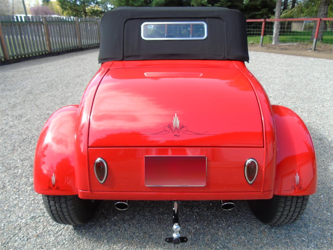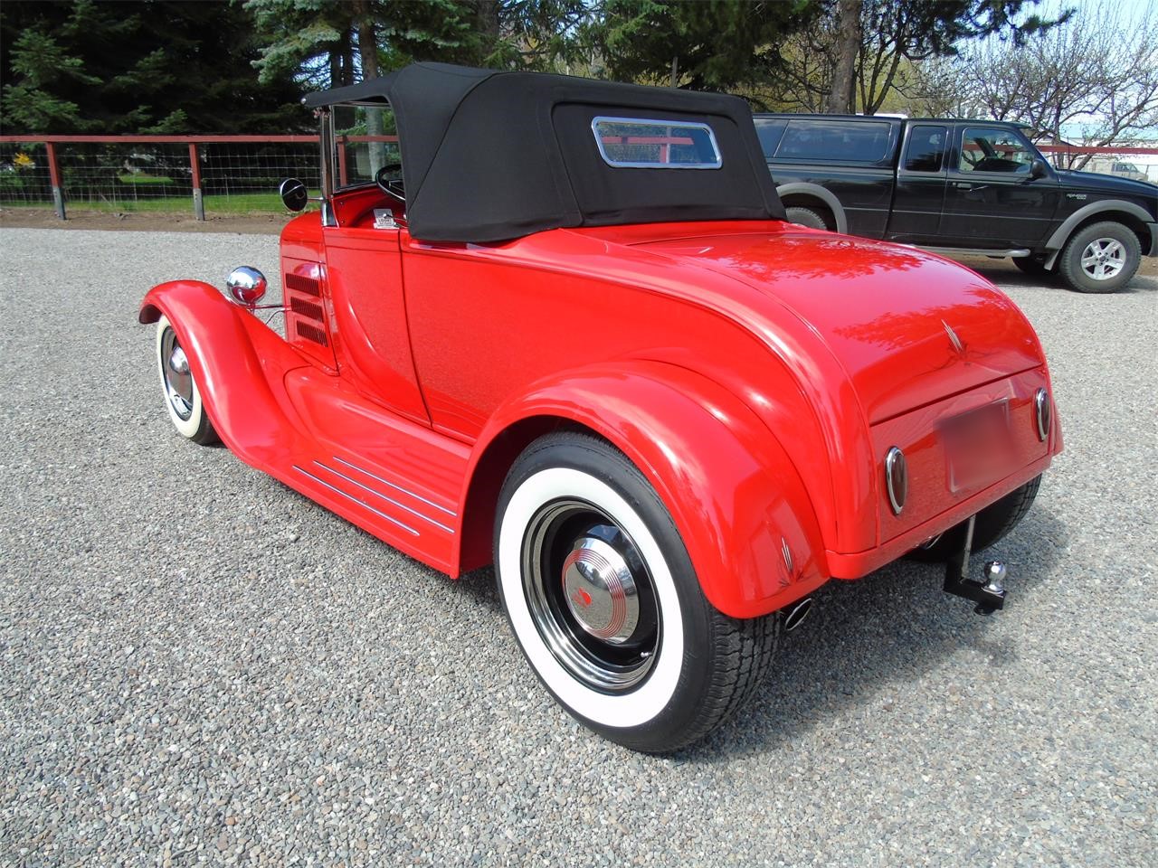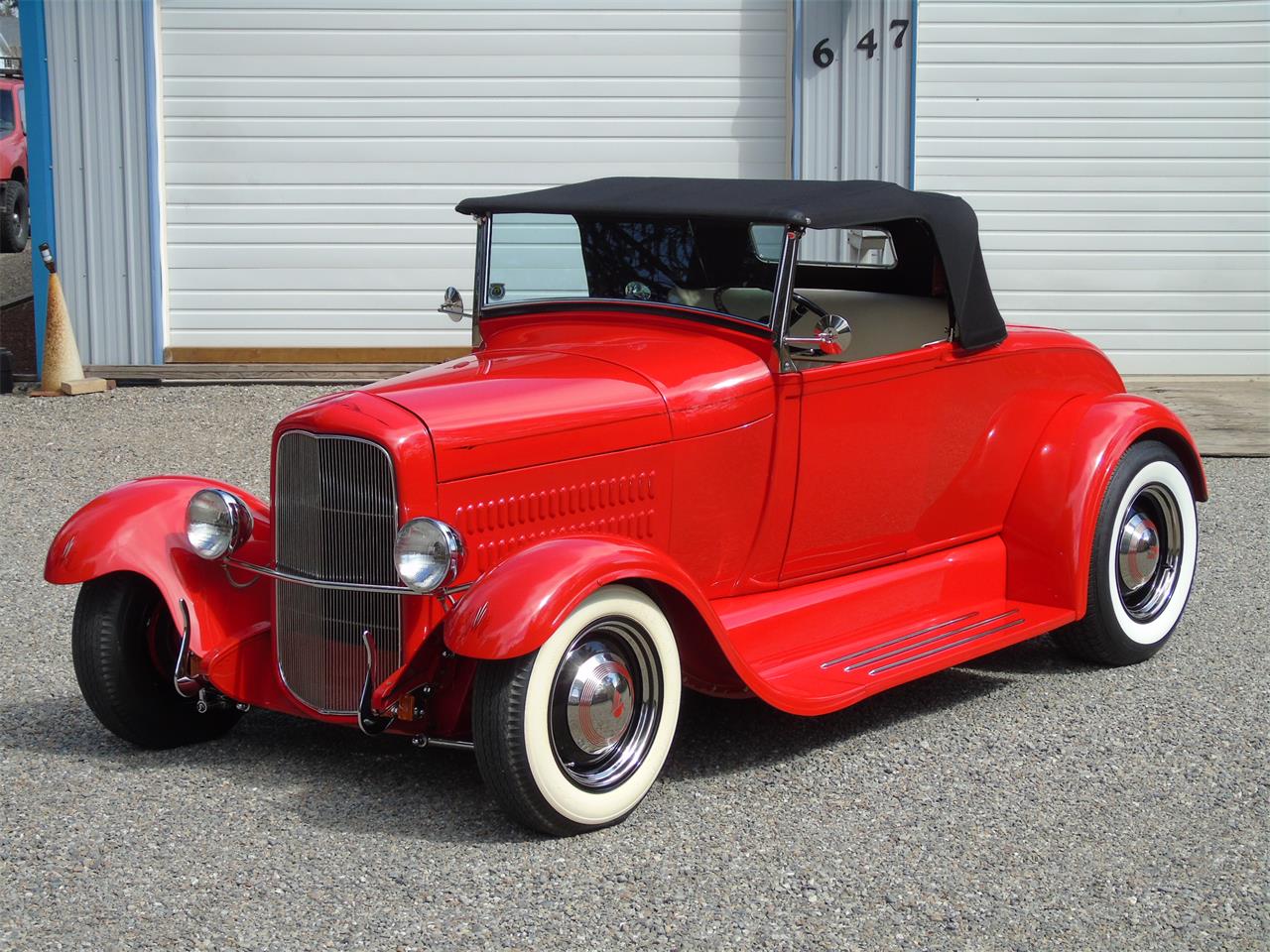 Traditional style build with very nice mechanical components. Paint is PPG base clear Porsche Guards red under body and fenders. All Ron Francis wiring very nicely done. Electric trunk lid with battery in trunk, Interior Glide bench seat, ultra leather white tuck and roll with red piping, black carpet and mats, 32 dash, Moon eye gauges in SoCal chrome bezel, Flaming River chrome tilt column with cut down 40 Ford steering wheel.