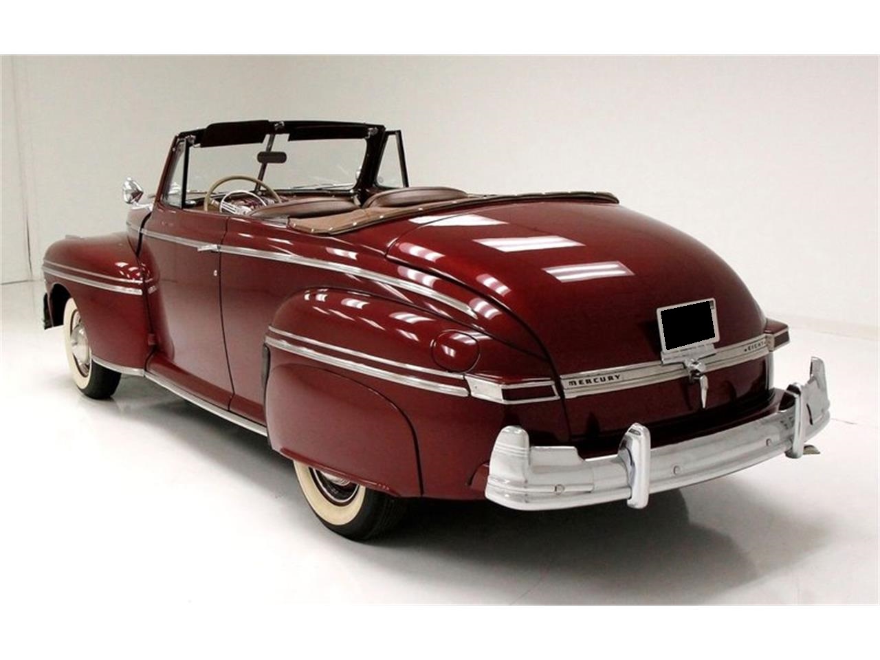 239ci V8 with a single 2-barrel carburetor protected by an oil bath air cleaner. A 3-speed manual transmission is on back, and throws power rearward to 3.54 rear gears. Very nice ride, a great cruiser. Dark brown door panels in smooth vinyl are bedecked with a thin panel running the length of the door and is in a basket weave pattern in cream and dark brown. Spattered within the door panels are very nice chromed cranks with cream bakelite bezels and knobs. Overall the Dark Red paint is great.C