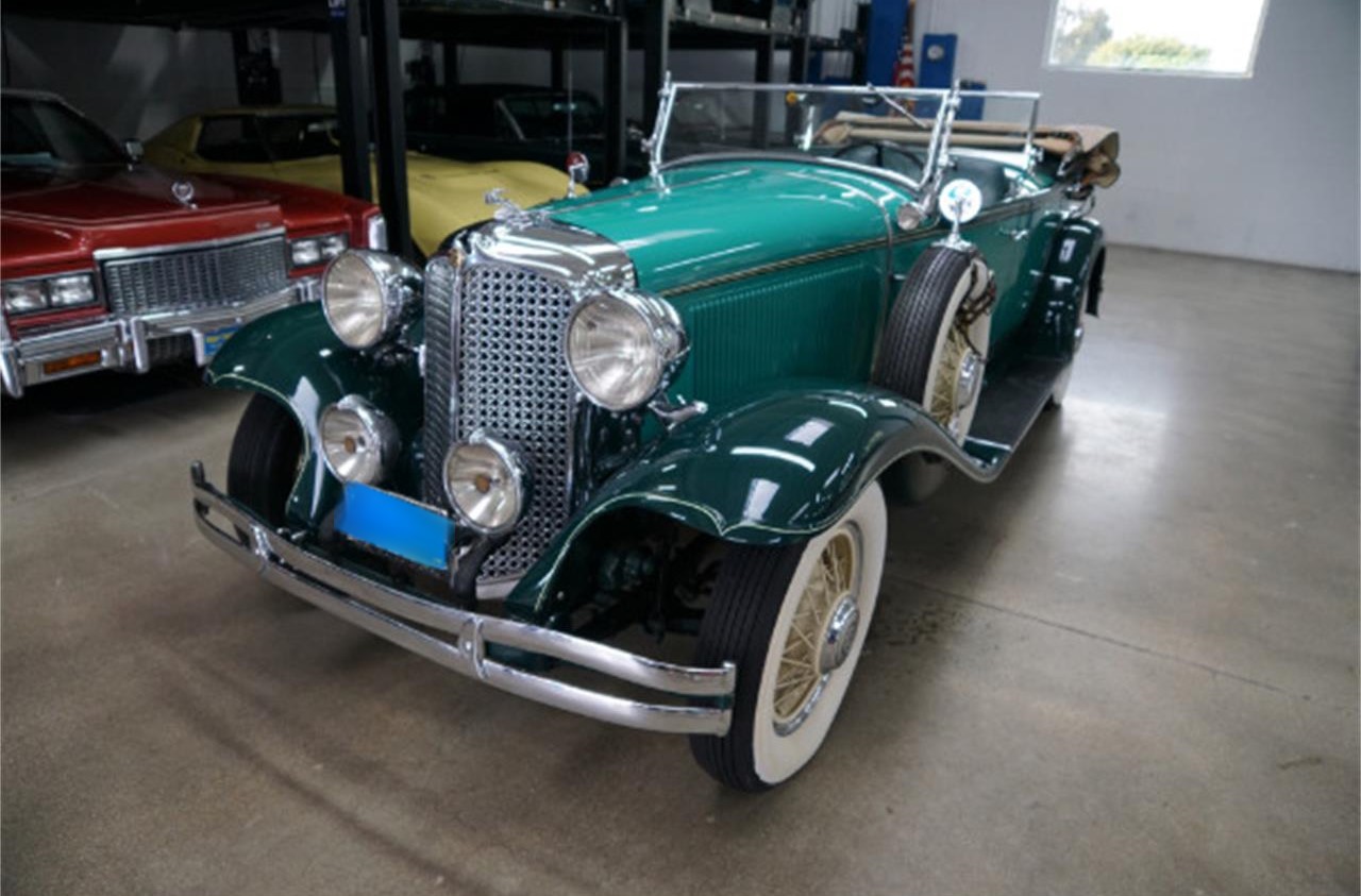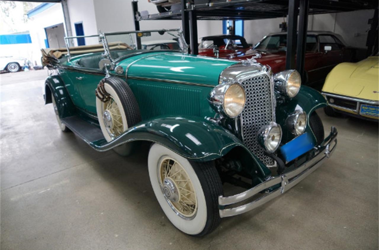 1931 Chrysler CD 2nd Series 124 Dual Cowl Phaeton it s original CD 2nd series 261 88HP 8 cylinder engine, original 4 speed non synchromesh transmission with hydraulic brakes, and still beautifully presented in a stunning two tone Green color paint with all body panels obviously removed, stripped and media blasted prior to being restored, beautiful chrome and light lenses and grille and a gorgeous matching Green leather interior.