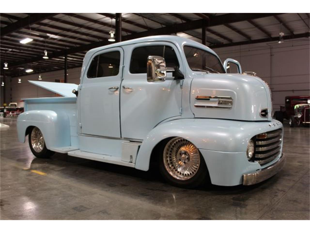 This beautiful 1948 Ford COE, 4 door. It is the perfect family truck to take those long needed road trips in style and comfort.The exterior has a beautiful Soar Blue paint with a set of eye catching 18 Foose wheels.