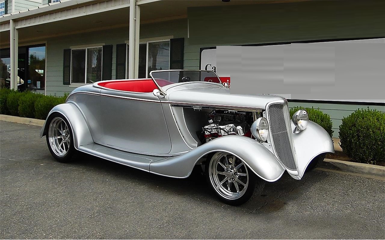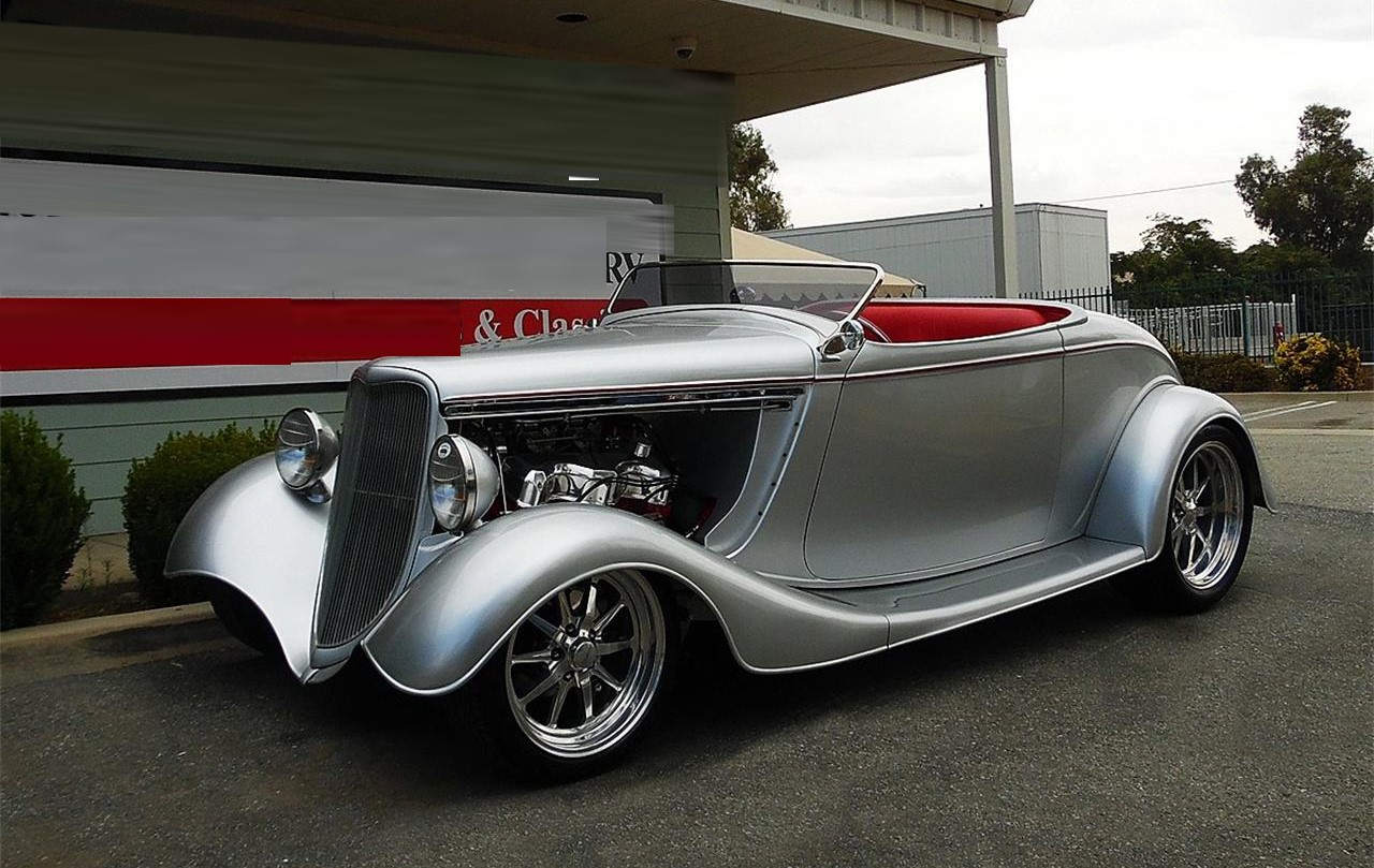 This car was built by Hot Rods and Harleys by Davis and is Equipped with a 409 Chevrolet V8 by Mark Evans. 476 ci, 1965 Vintage Block, Bored and Stroked 572 Engine, Dual 500 cfm Edelbrock Carburetors, Hughs GM 350 W Automatic Transmission, Front and Rear Wilwood Polished 4 piston Brakes, Haneline Gauges.