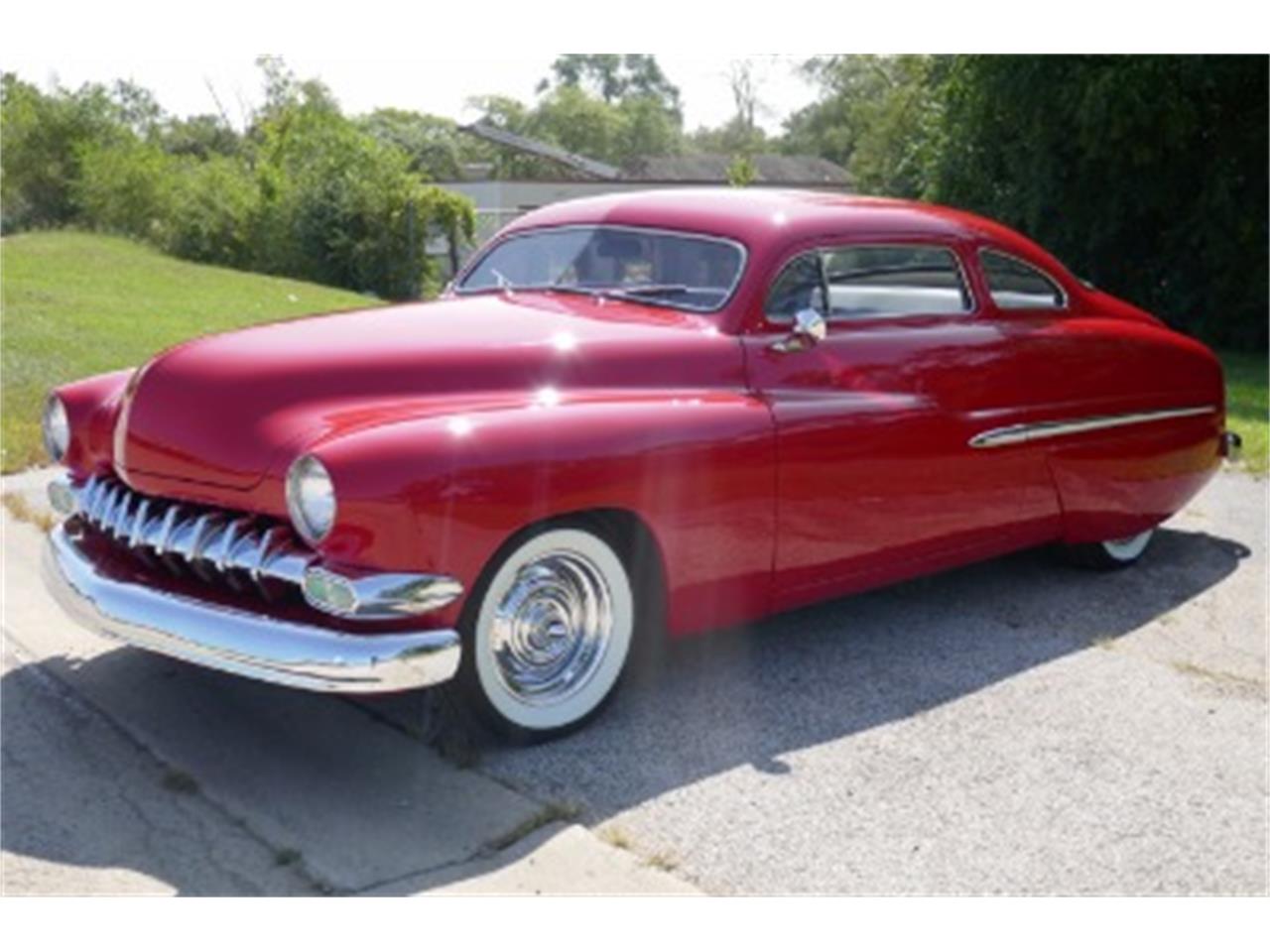 1949 Mercury Coupe Chopped Top.Powered by a Pontiac 400 V8 Engine that was replaced in the beginning of 2016 Chrome Detailed ,Edelbrock Carb350 Automatic Transmission also replaced 2016 B. Pillars slanted, corners of hood are rounded, frenched headlights and tail lights tail lights are from a 59 Caddy 54 Chevy Grill and stainless trim on the sides,Stainless Steel Exhaust,Popper doors and Trunk9 inch rear end 73 gears Power Steering and power front disc brakes 2016 NEW Red exterior paint .