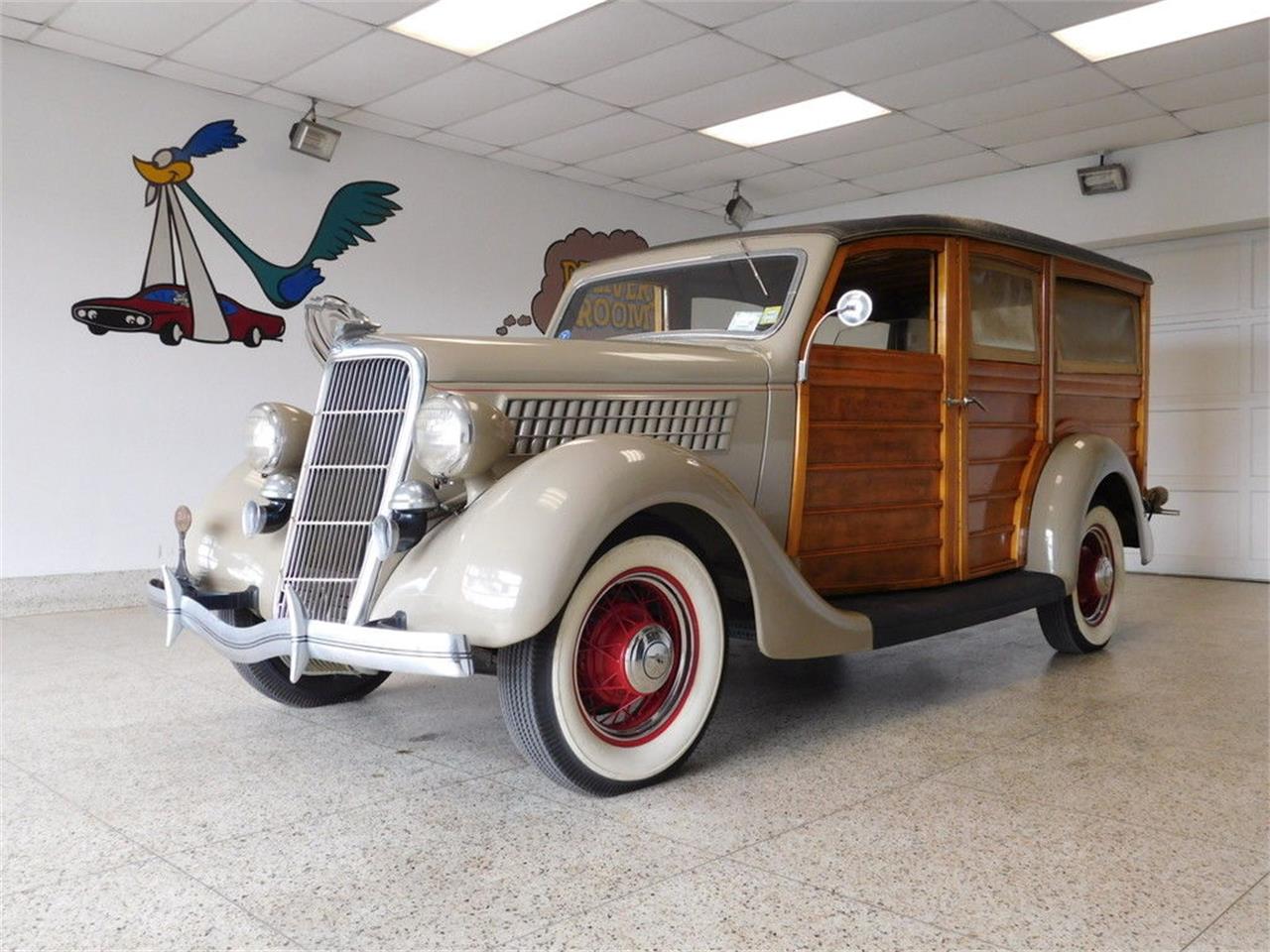 This Vehicle Consists of a Mostly Original 1935 Ford Model 48 4 Door Woody Station Wagon. Vehicle Was Purchased in the 1970s And Has Been Maintained and Preserved While Stored in a Dry, Enclosed Garage. Exterior is in Mostly Original and is in Excellent Condition. Original Rust Free Steel Hood, Fenders, Doors and Body Panels are Very Straight and Well Aligned. Exterior Paint Has Had Some Cosmetic Refinish Work Performed in the 1970s. Older Tan Color Paint Presents Very Well with a Few Minor Dings and Evidence of a Few Spot Repairs. Windshield is in Excellent Condition. Door Jambs Appear to be in Original Paint and are in Excellent Condition. Wood Body and Wood Door Panels are Original and are in Excellent Condition.