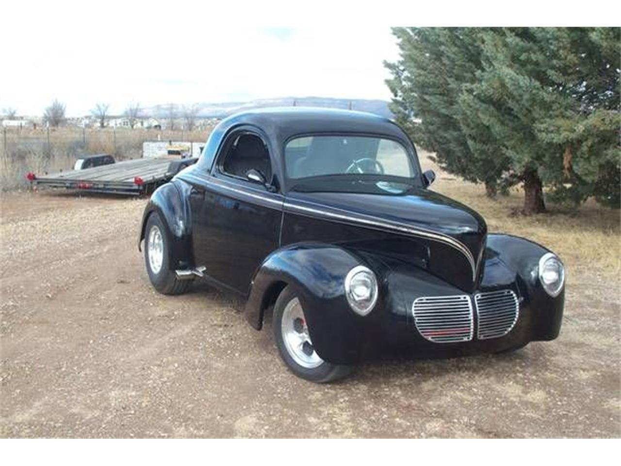 1940 Willys Coupe outlaw body custom chassis 4 bar coil over rear Camaro 10 bolt 3 42 rear ifs front suspension power steering power brakes front disc rear drum under dash air conditioning heat 16 gallon fuel cell gm chrome tilt column leather billet steering wheel fresh vortec 350 zz4 block balanced and blueprinted iron heads