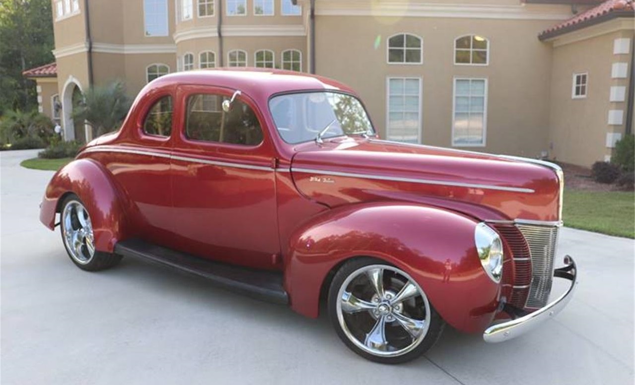 1940 Ford coupe street rod. Powered by 350 small block motor with matching 350 turbo transmission. Power front disc brakes drums in the rear, power steering, vintage AC, Vdo gauges, New wheels and tires, 3 inch exhaust, Am Fm radio cd, power windows, power door openers. Interior includes bucket seats and a rear backseat.