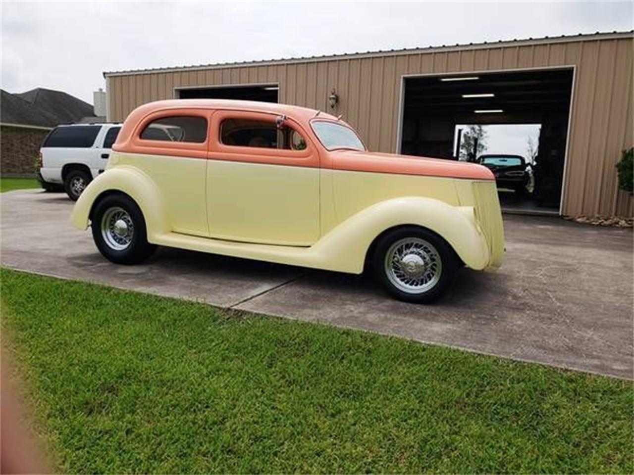 1936 Ford 2 Door Slant Back. As you can see, this 36 is highly modified. Suicide doors, 37 style headlights, tilt hood, LED 3rd tail light frenched custom LED tail lights, etc. etc. Suffice it to say you will be the only one with a 36 like this. Y B NRML.. 351 Cleveland, headers ,full exhaust with chrome tips, custom plug wires, K N filter, smooth firewall. Air conditioning, C6 automatic, Ford 8 Highway gears. Mustang 2 front end, rack and pinion steering. Power disc front, drum rear. Full custom interior, center console with cup holders and phone charger. Electric windows, good glass, Dolphin gages. Runs smooth and drives good.