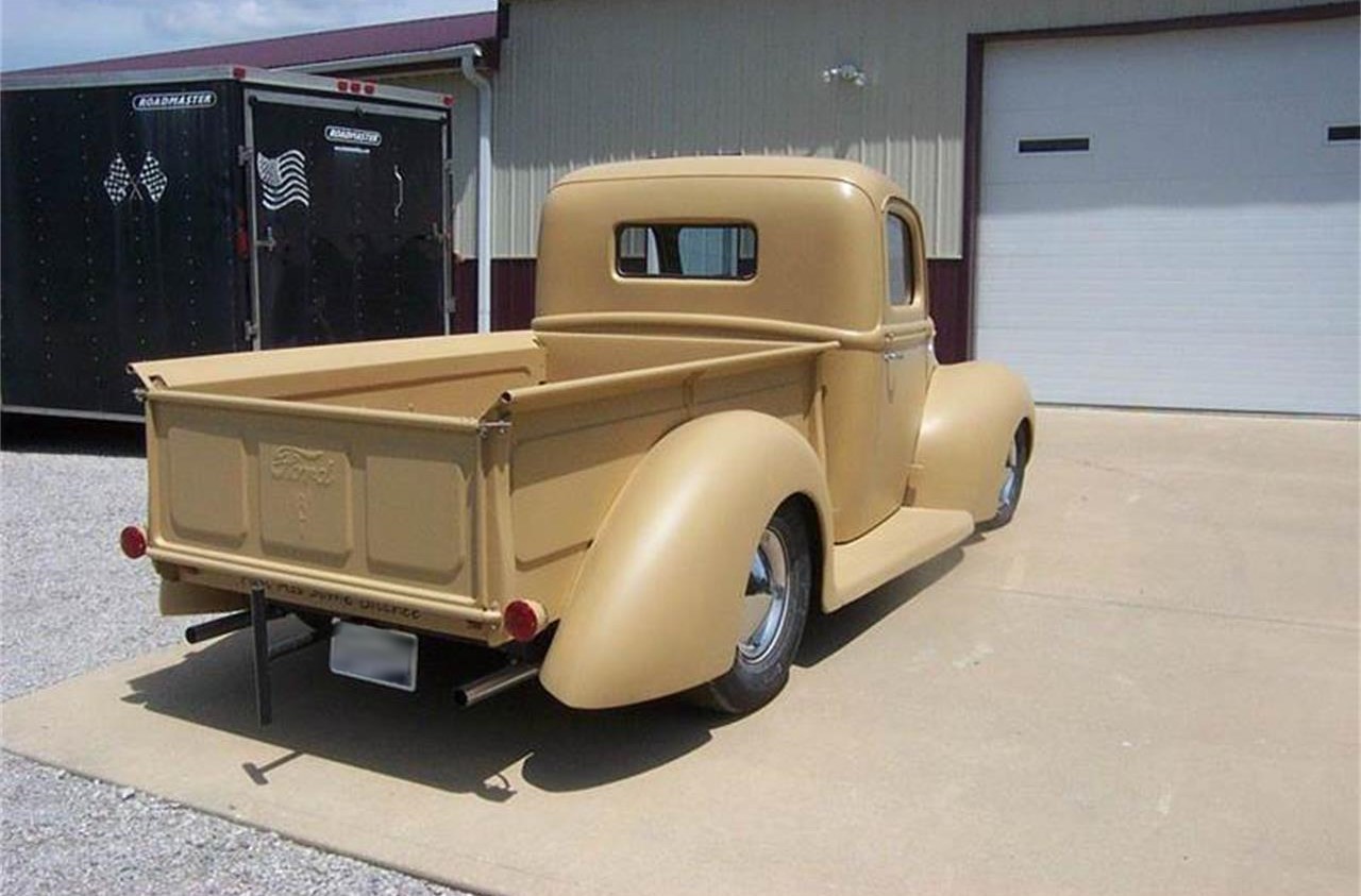 Here is a fresh built 1940 Ford Pickup all steel, straight and solid, upgraded with a rebuilt 283 V8, rebuilt 350 automatic, vintage heat and air, almost everything new or rebuilt, electric wipers, Drake gas tank, recessed fire wall new tinted glass, rear sway bar, 12 volt system, still has drum brakes but completely rebuilt, finned alum. transmission cooler, alum. radiator, 57 Plymouth hub caps, excellent running and driving truck, 50s stile hot rod build, has a deluxe 39 grill, priced to sell.